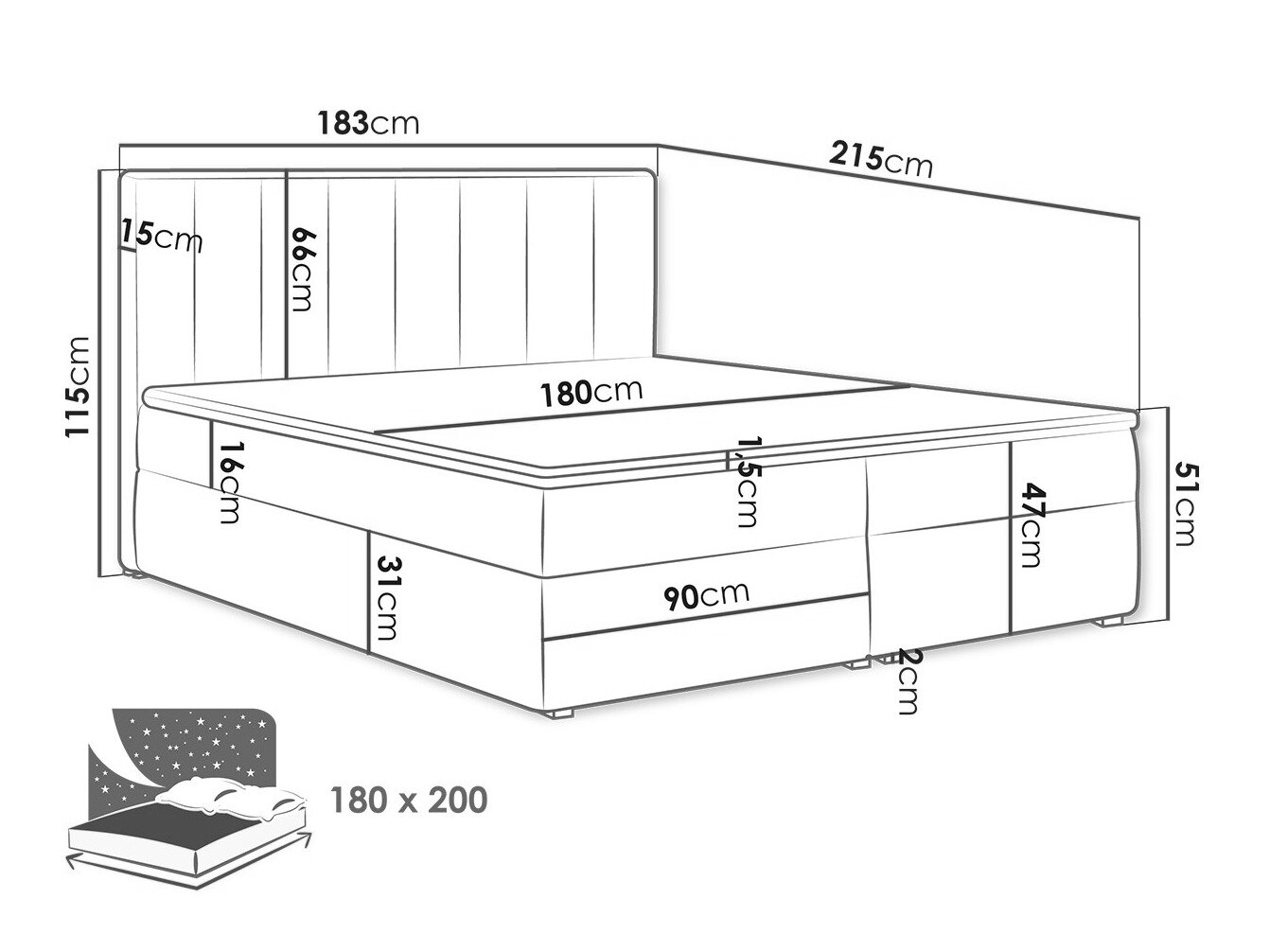 - 180 x 200 cm
