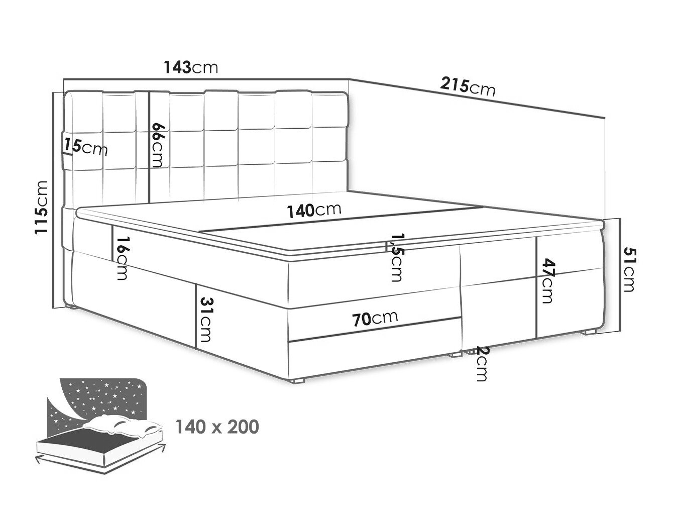- 140 x 200 cm