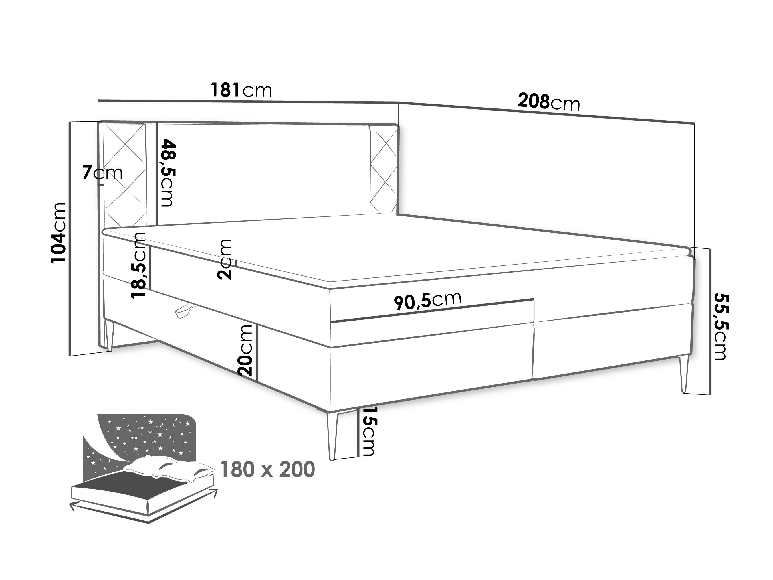 - 180 x 200 cm