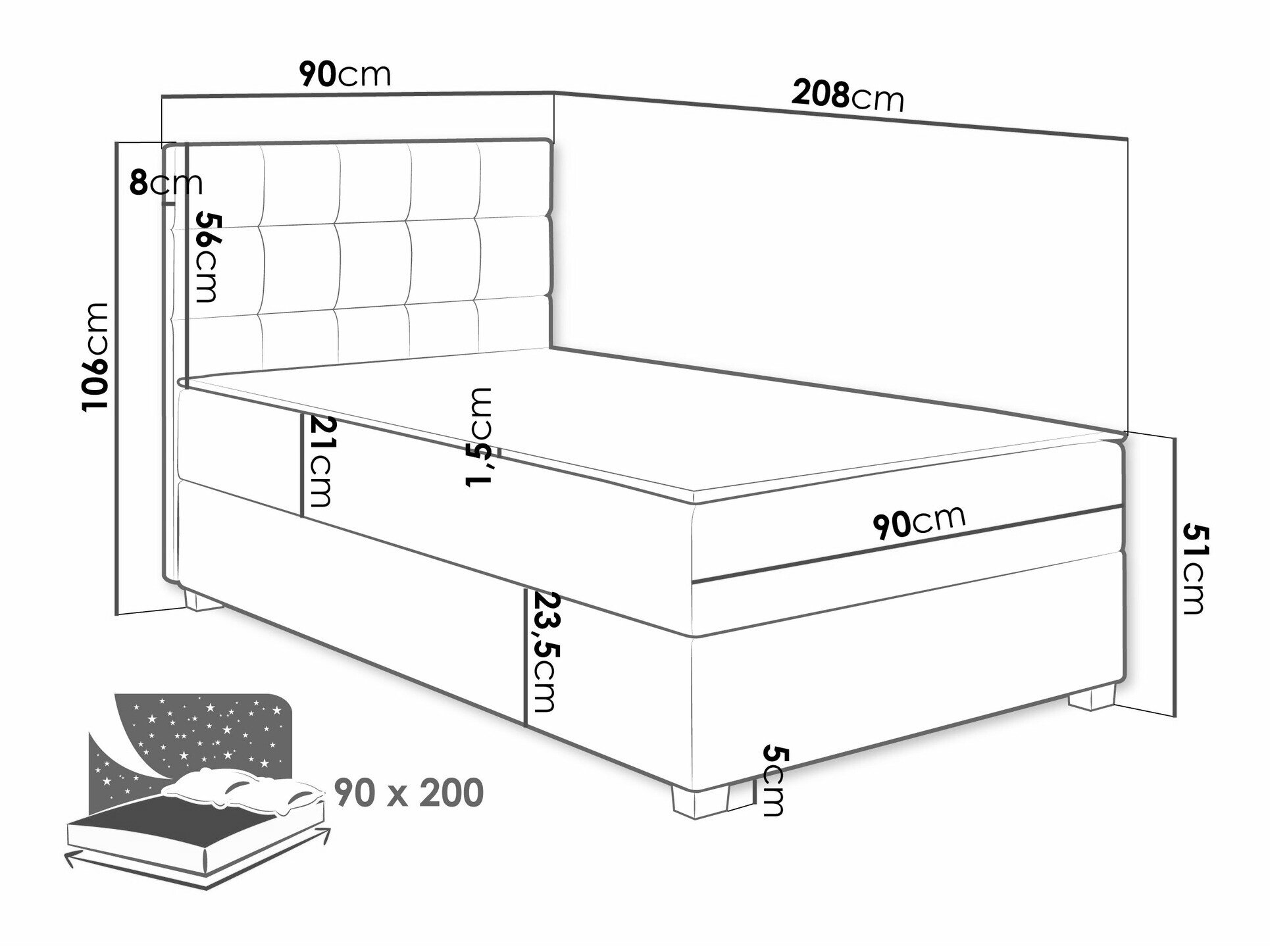 - 90 x 200 cm
