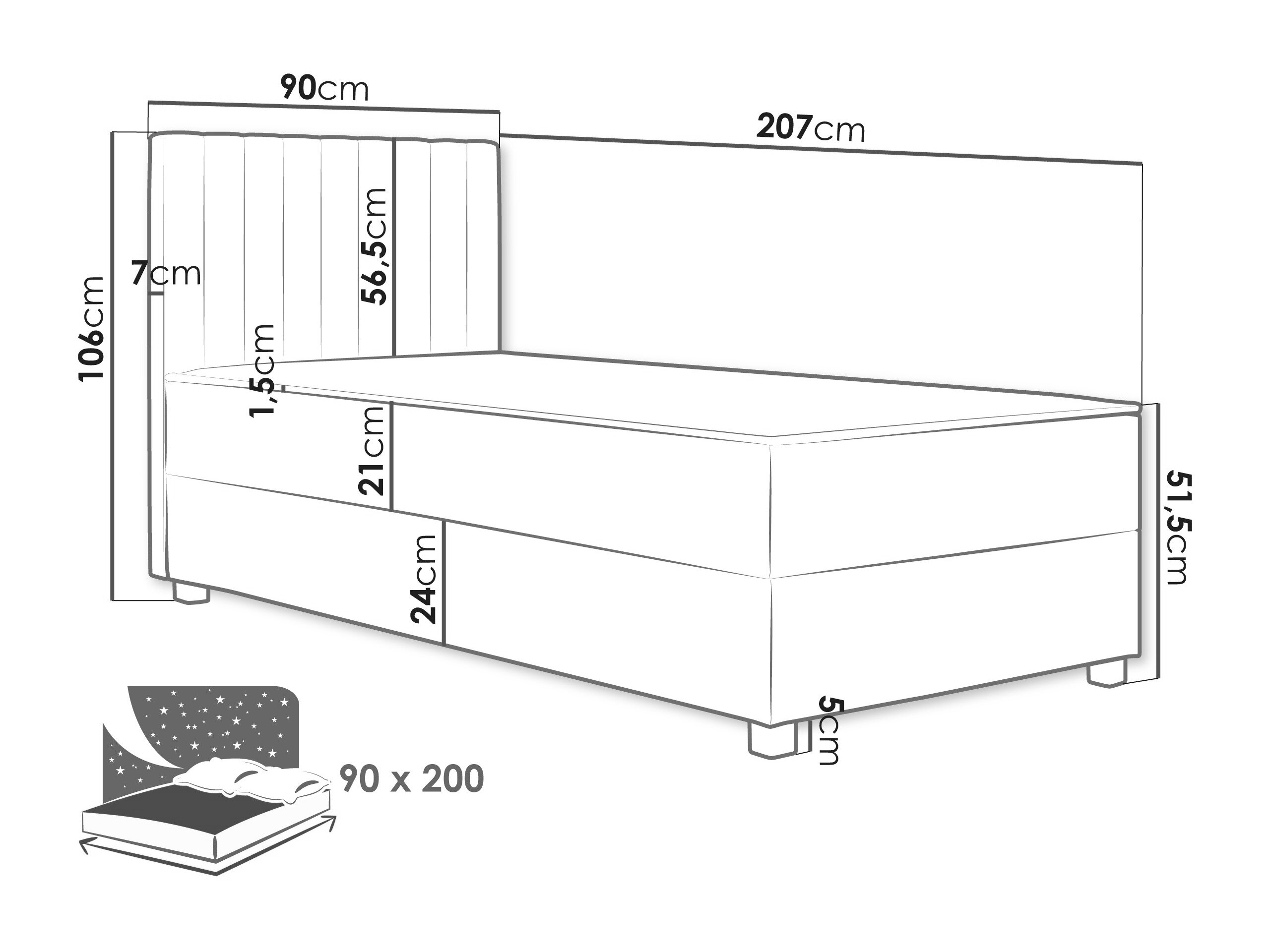 - 90 x 200 cm