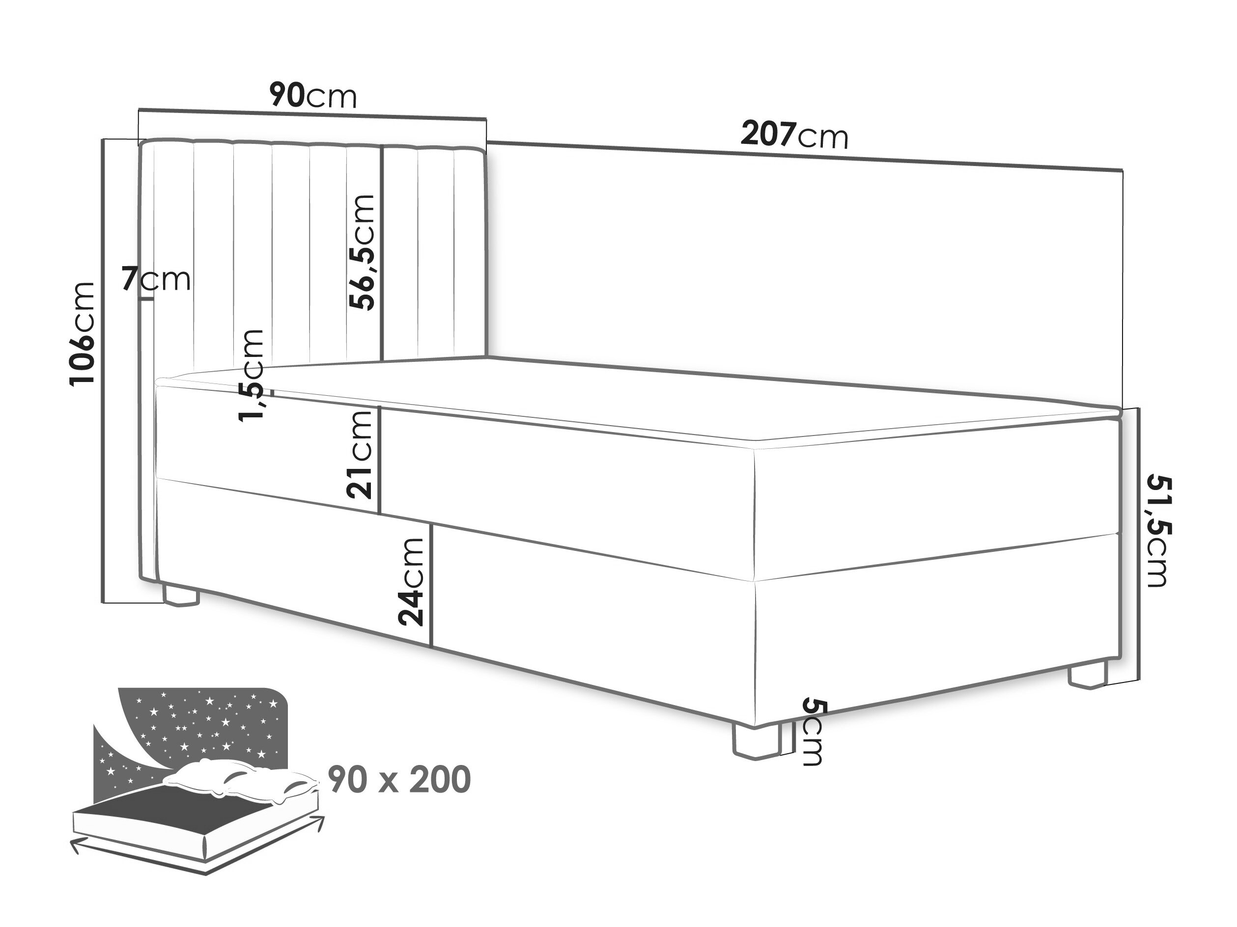 - 90 x 200 cm