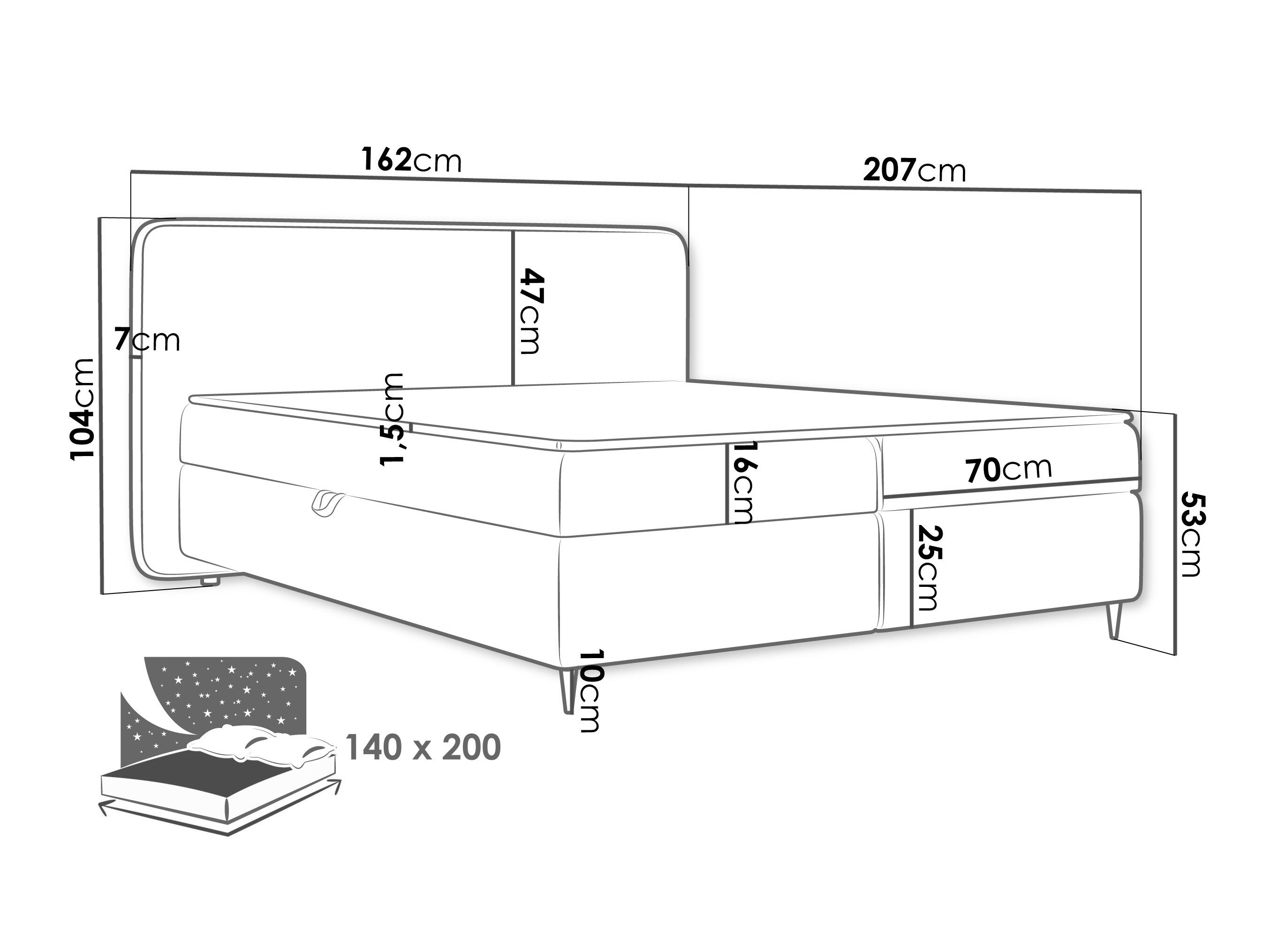 Sengekasse dimensioner: