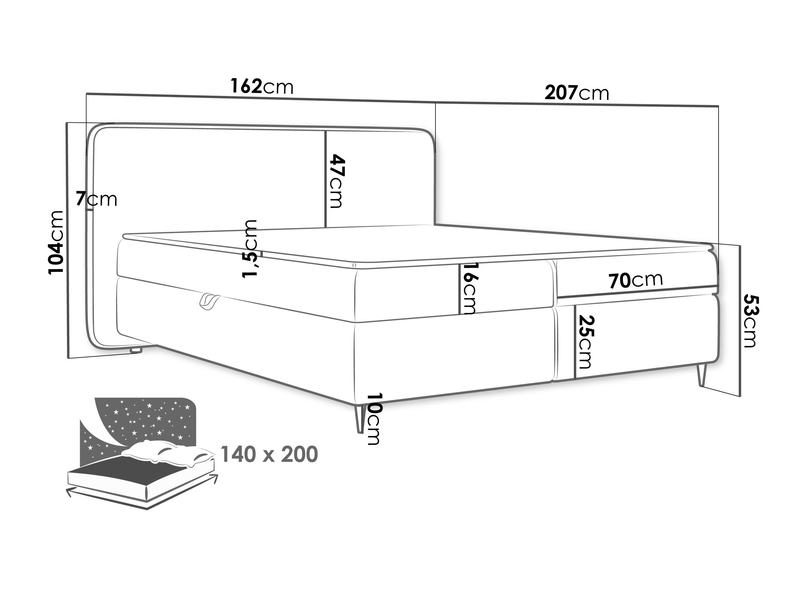 104 x 162 x 7 cm