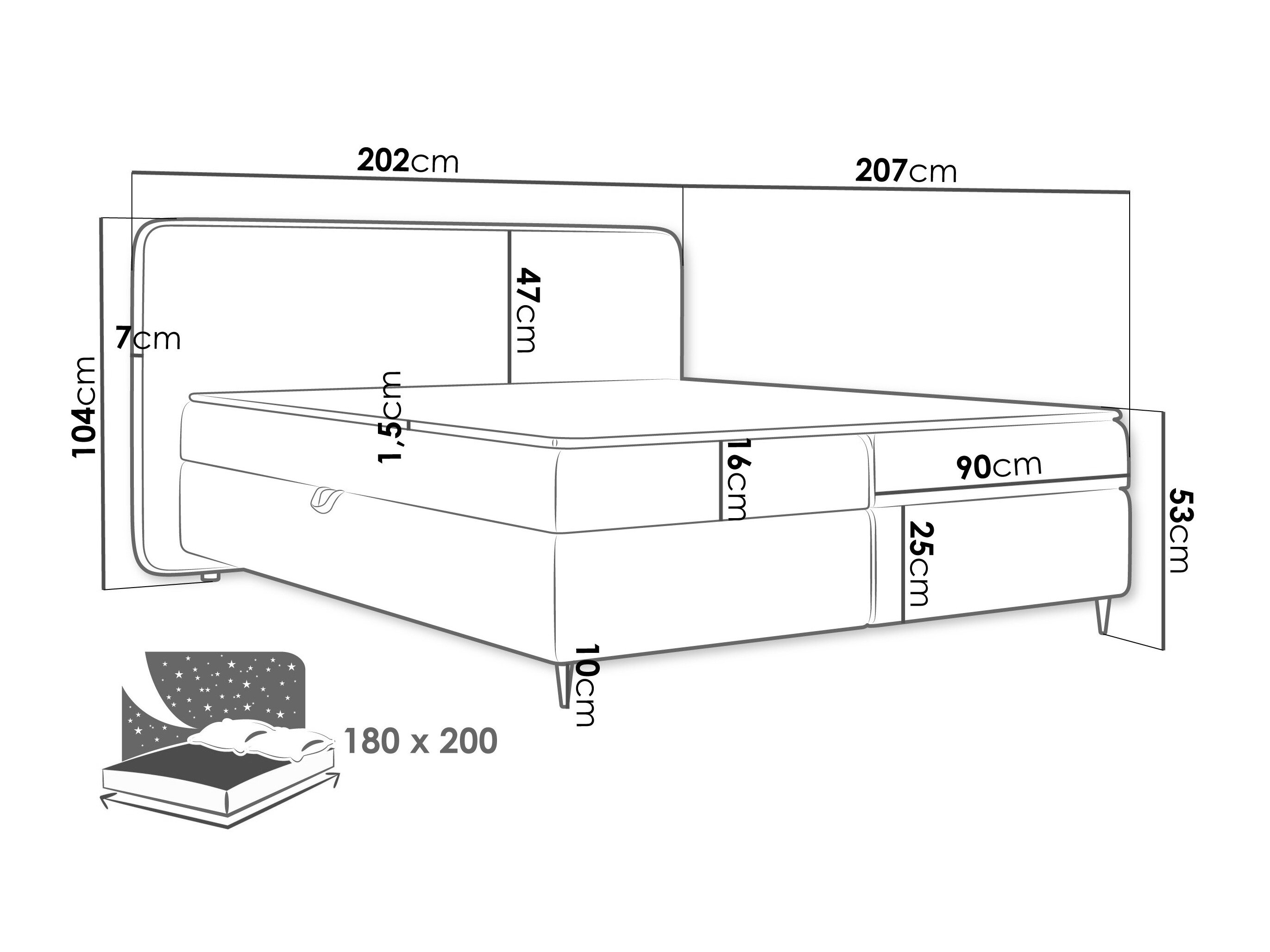 104 x 202 x 7 cm