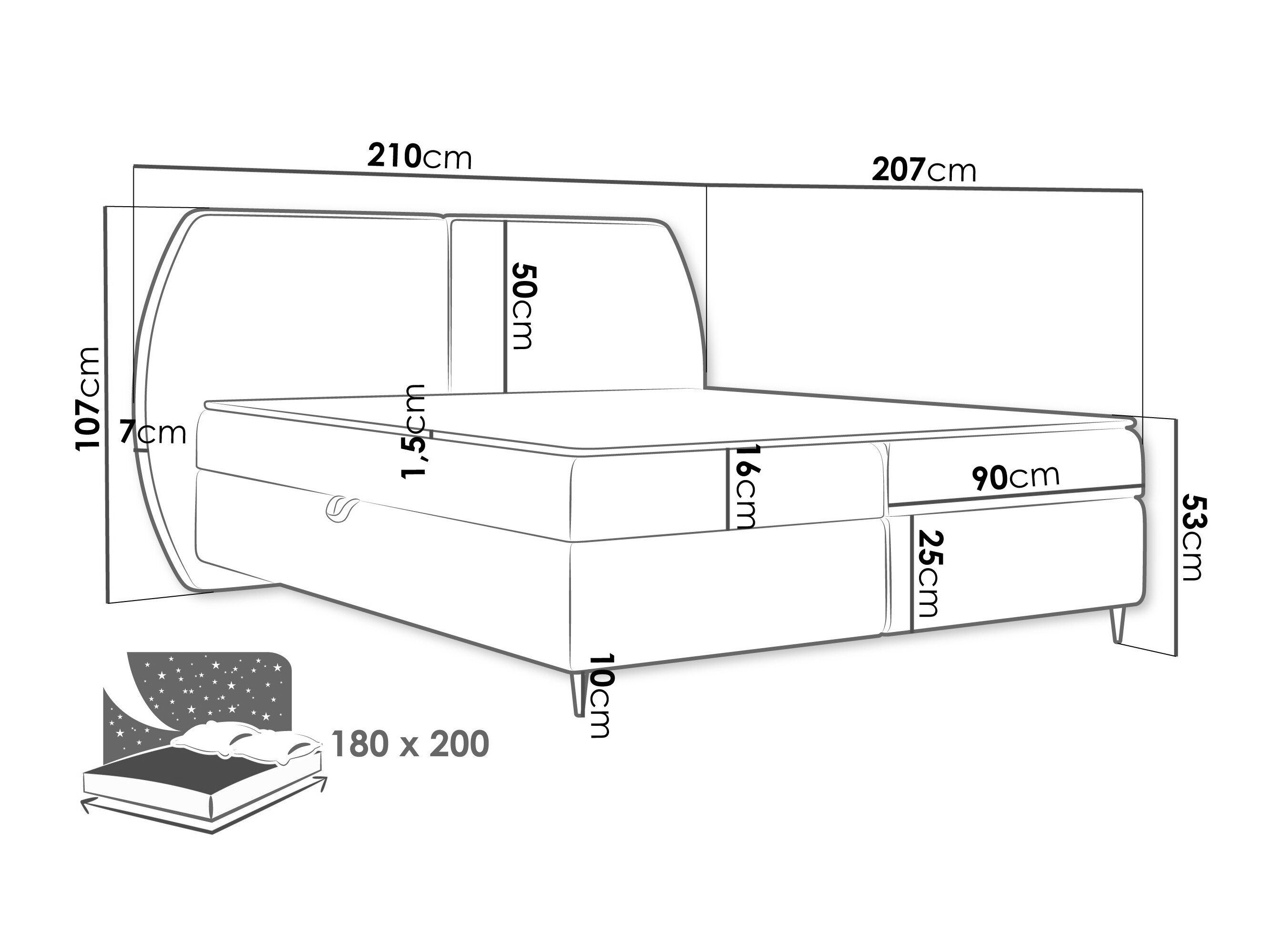 107 x 210 x 7 cm