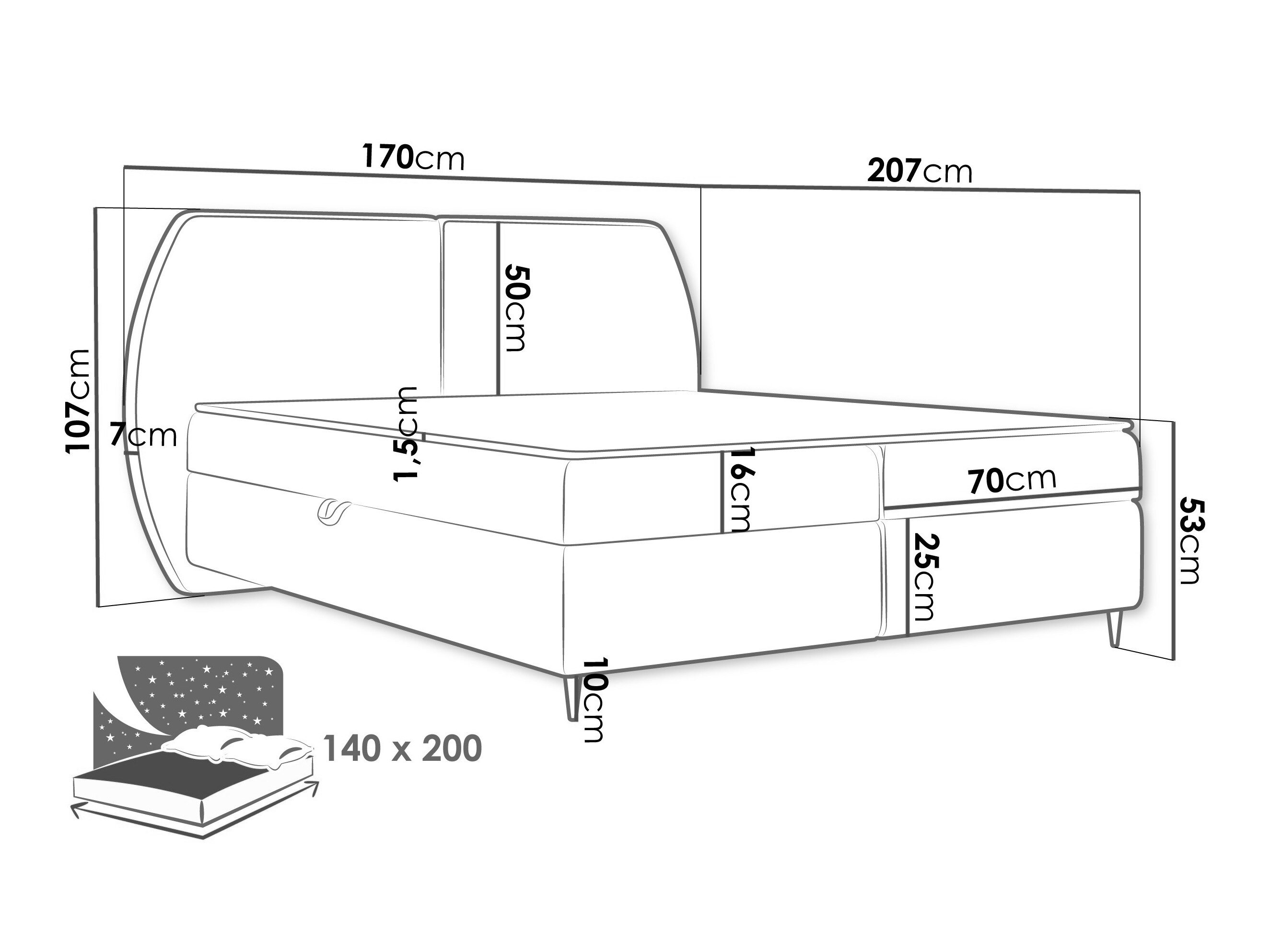 107 x 170 x 7 cm
