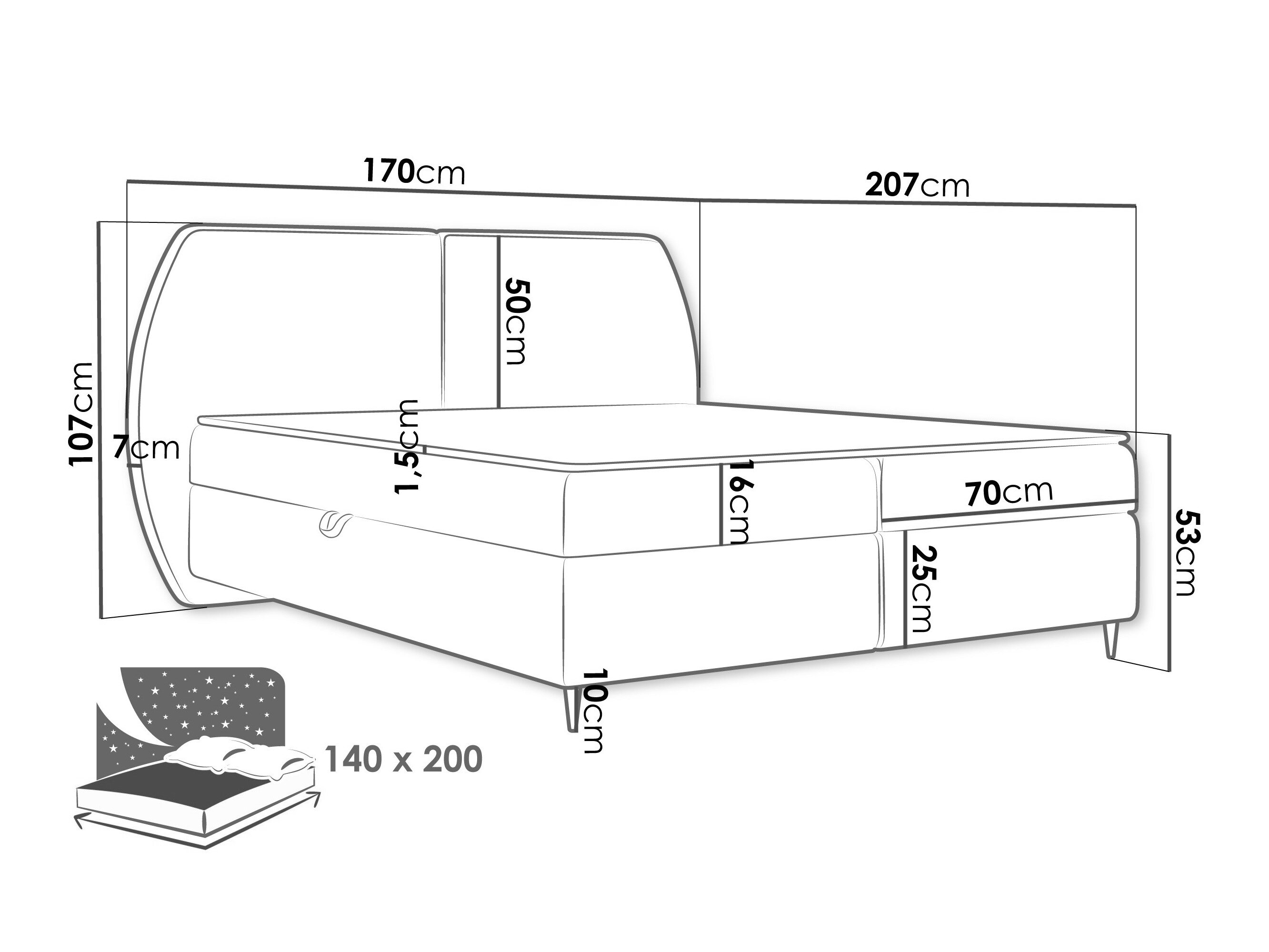 107 x 170 x 7 cm
