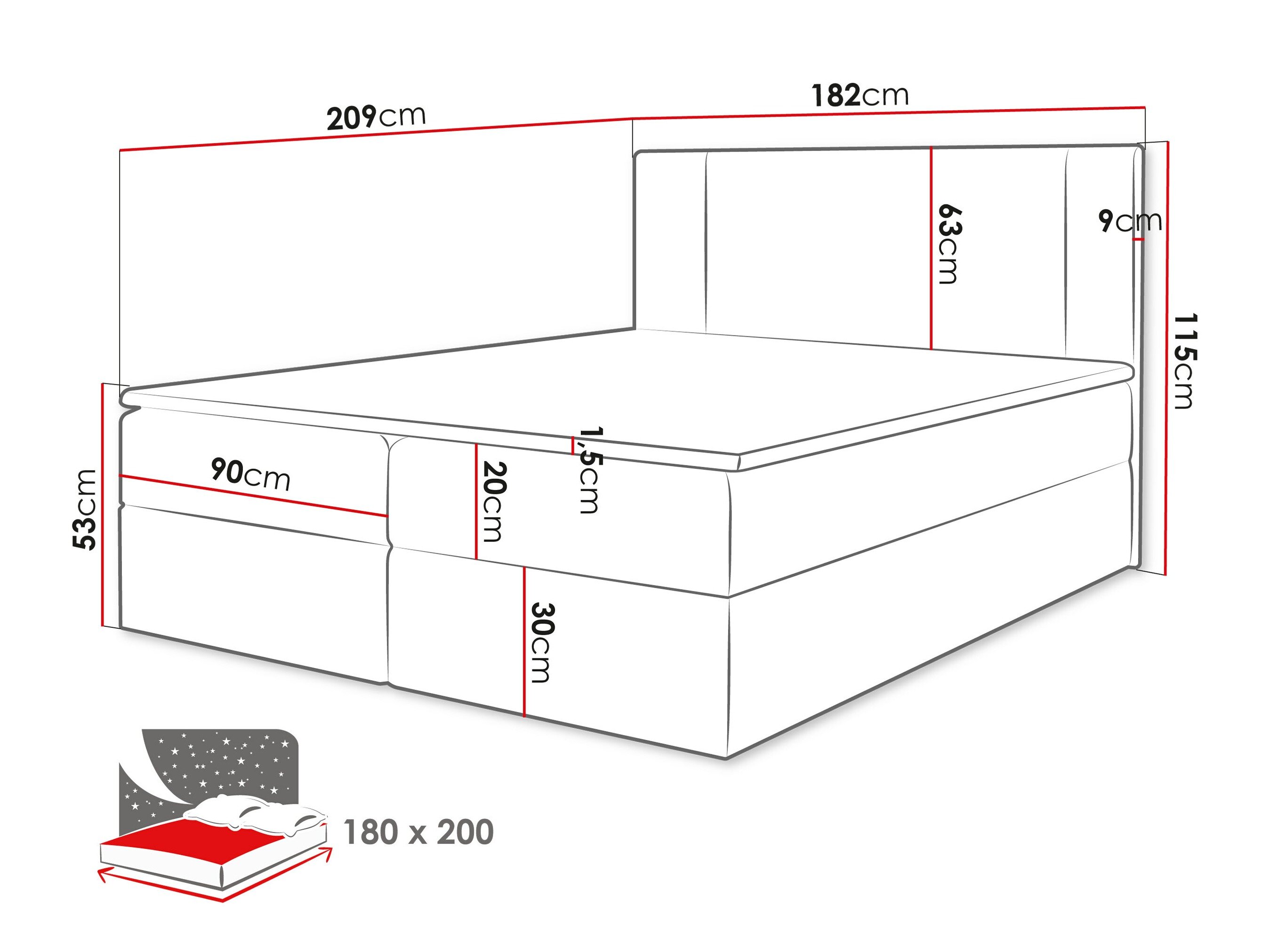 - 180 x 200 cm