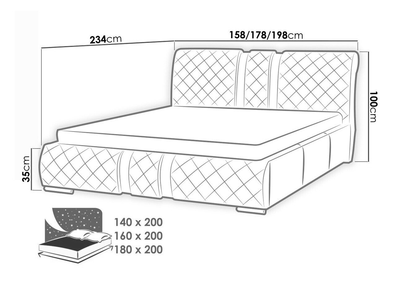 Sengekasse dimensioner: