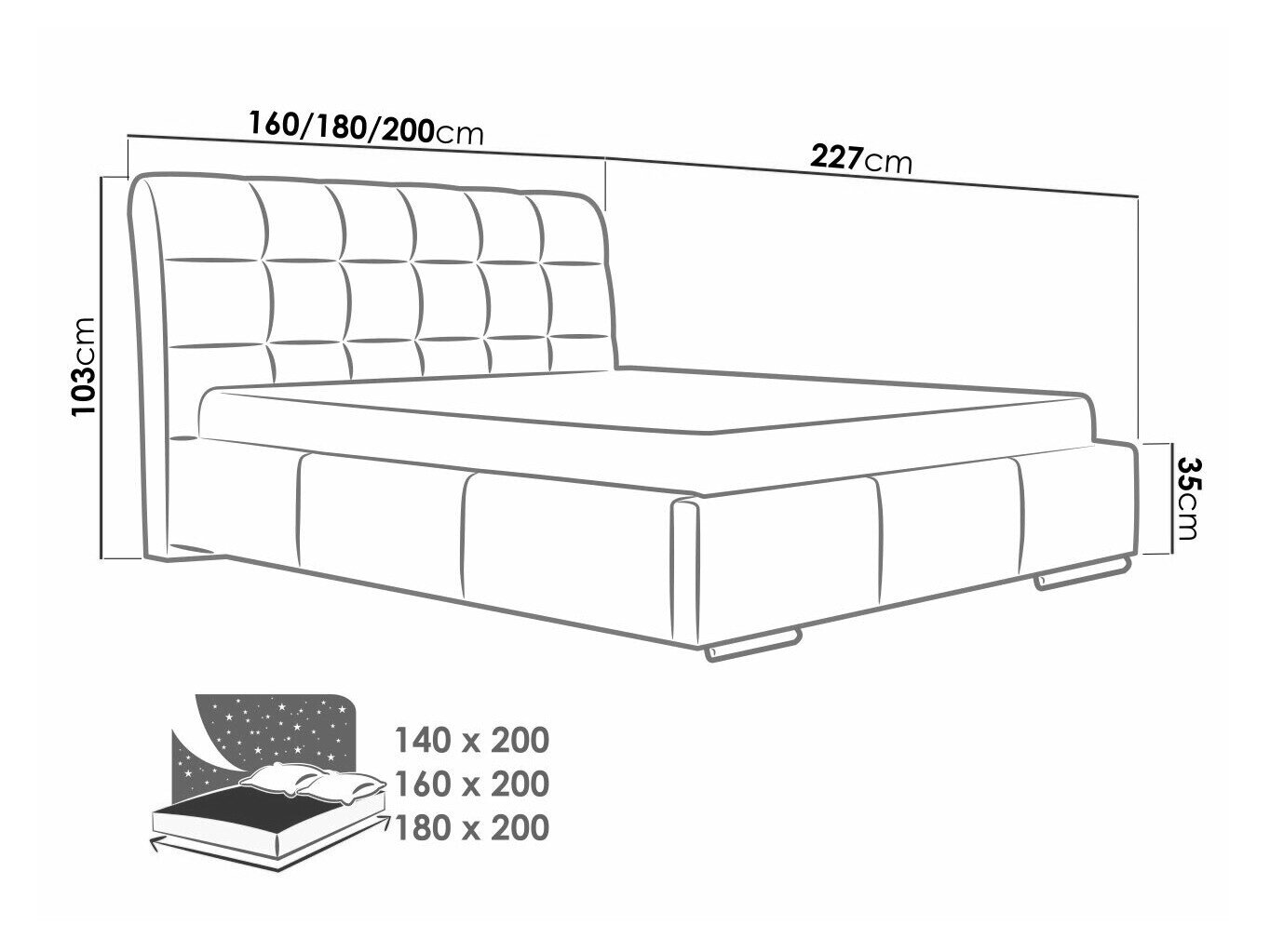 Sengekasse dimensioner: