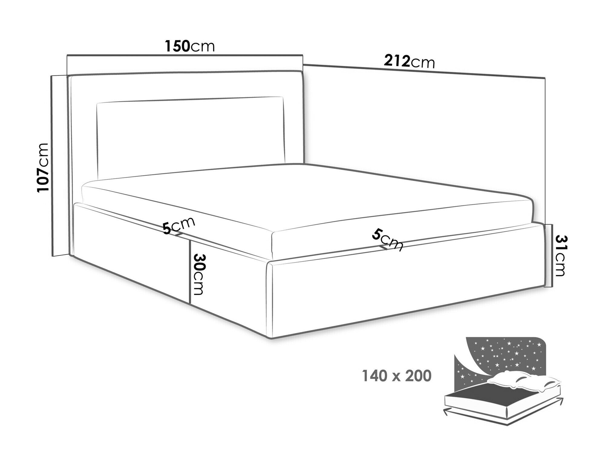 Sengekasse dimensioner: