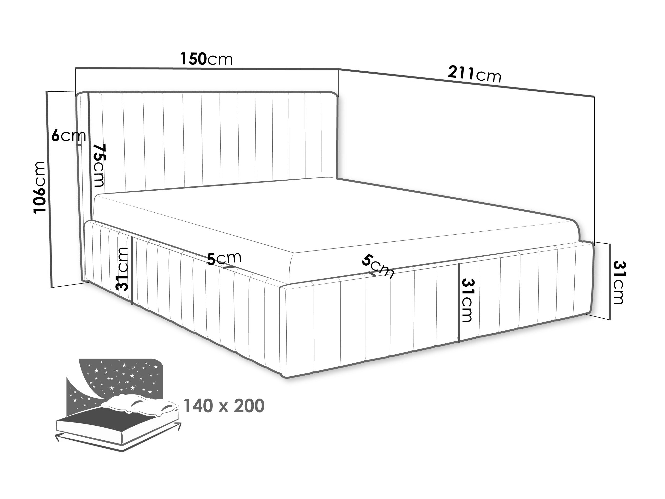 28 x 140 x 200 cm