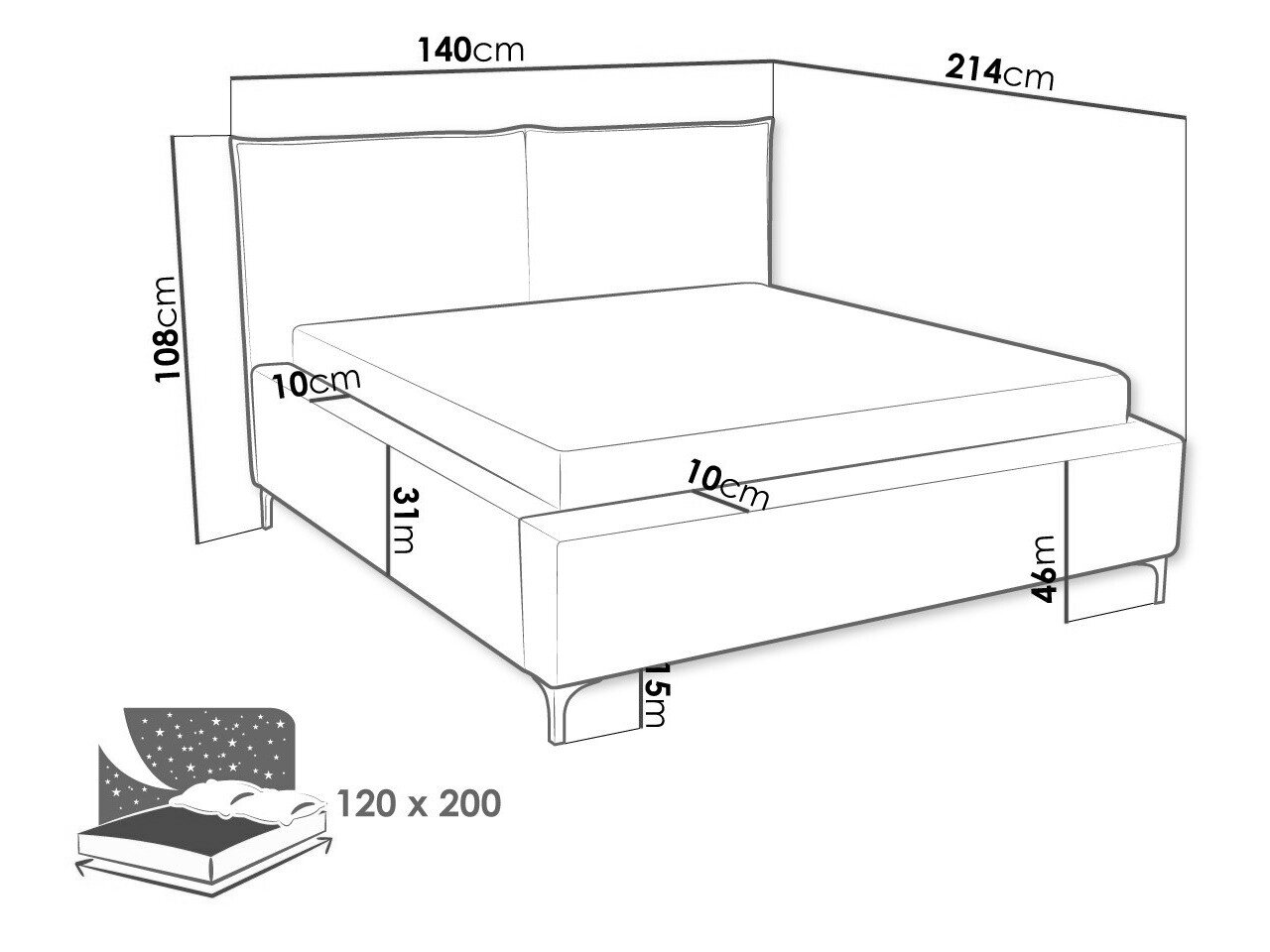 108 cm  200 cm  214 cm