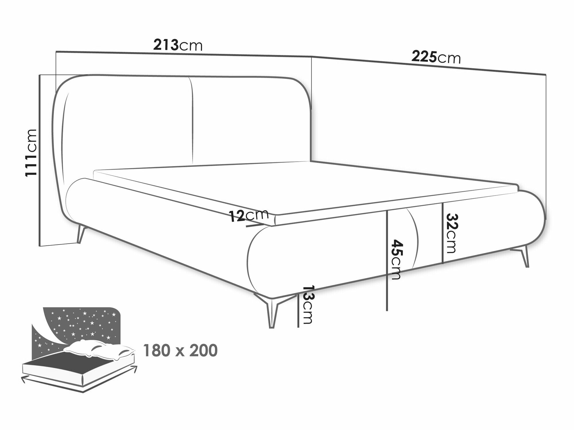 - 180 x 200 cm