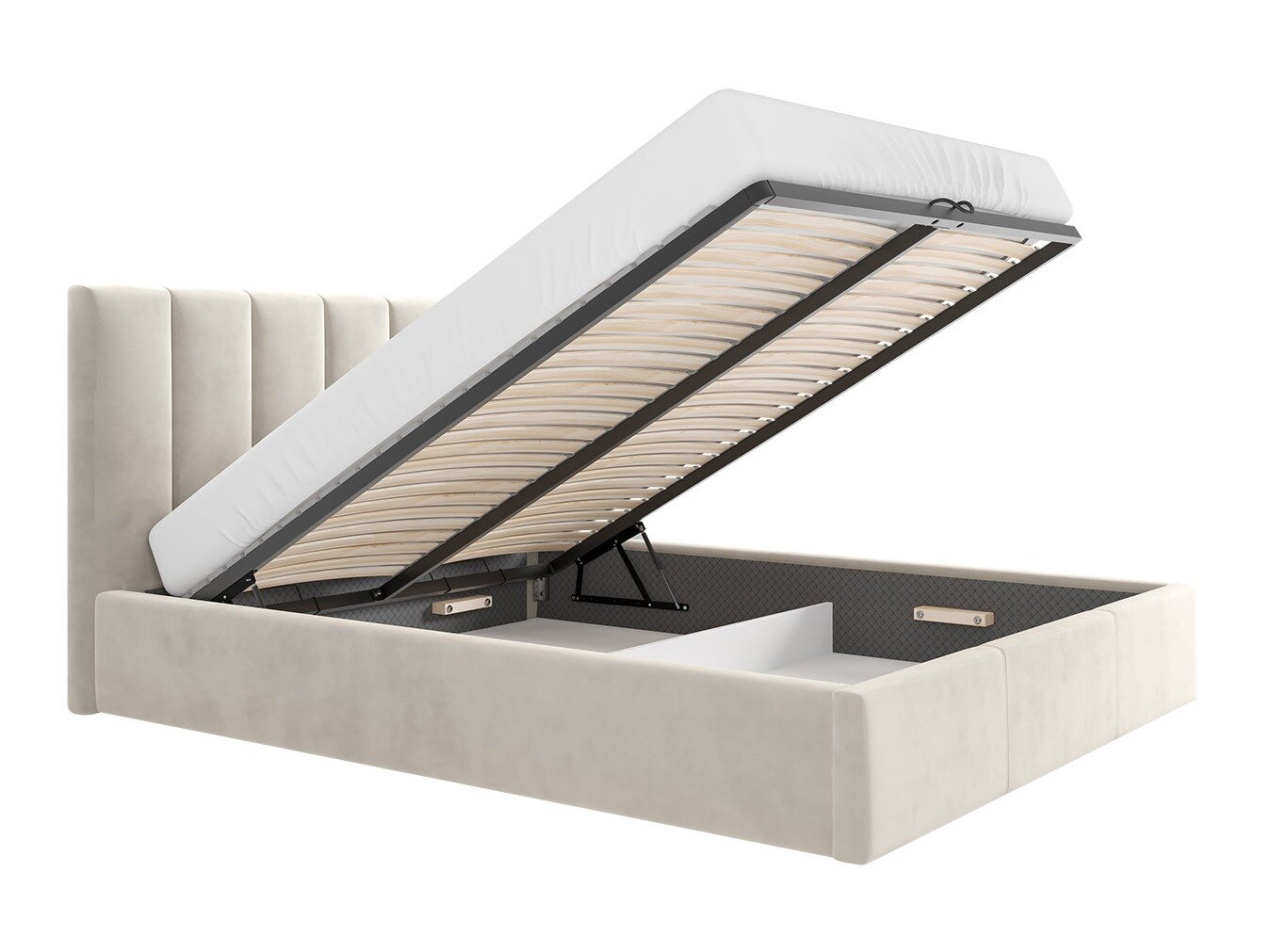 - Bunden af sengekassen er stof