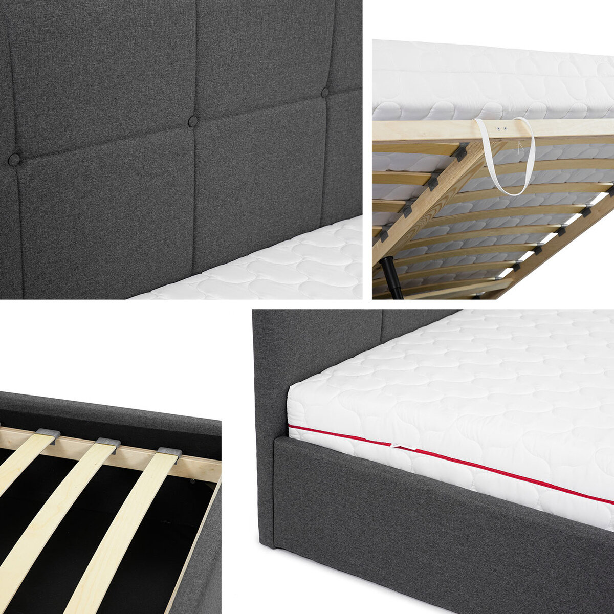- Bunden af sengekassen er stof