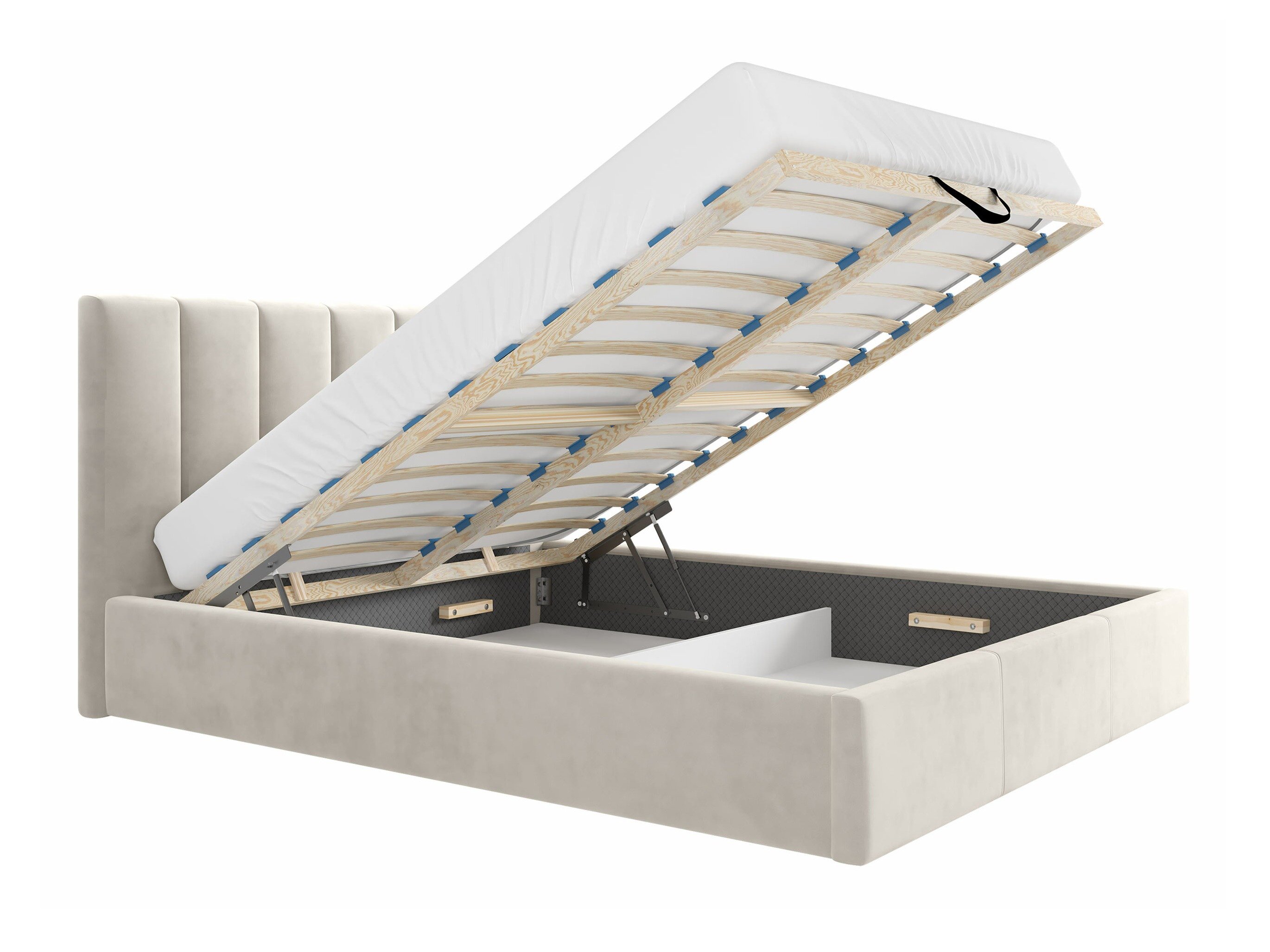 • Bunden af sengekassen er stof