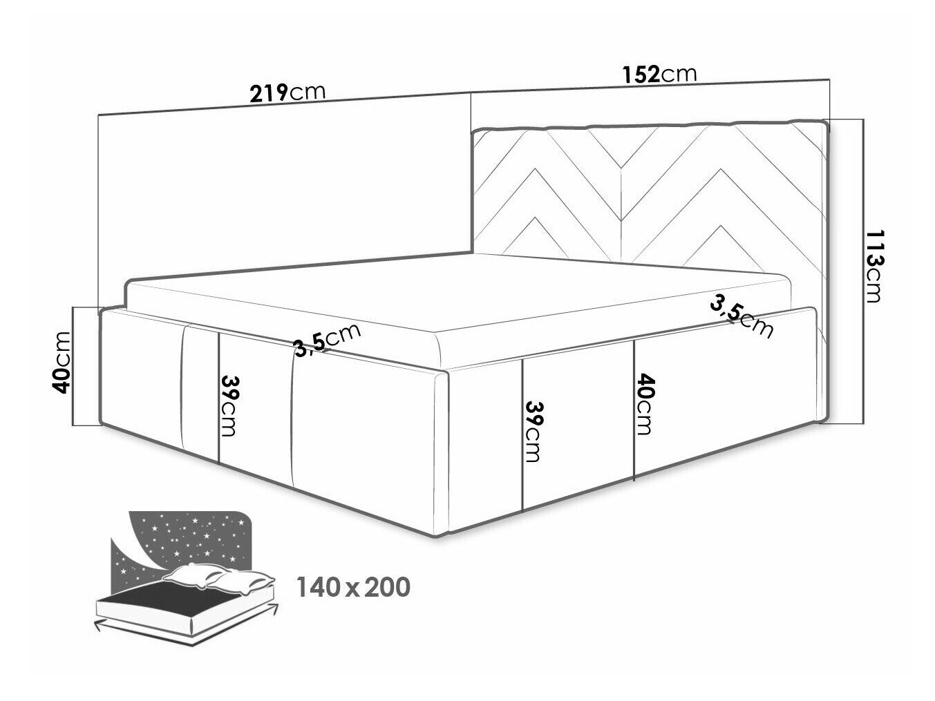 Sengekasse dimensioner: