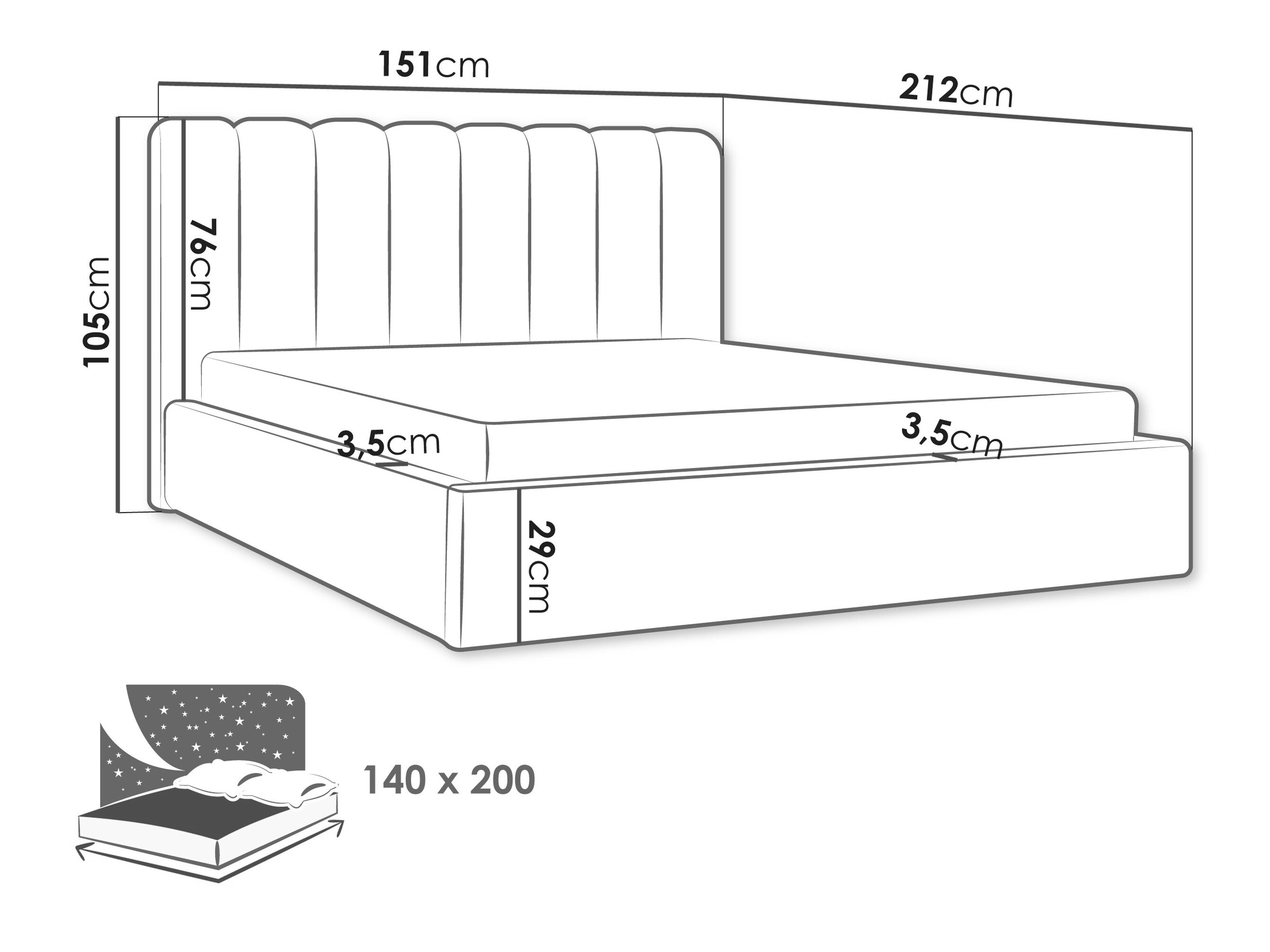 Sengekasse dimensioner: