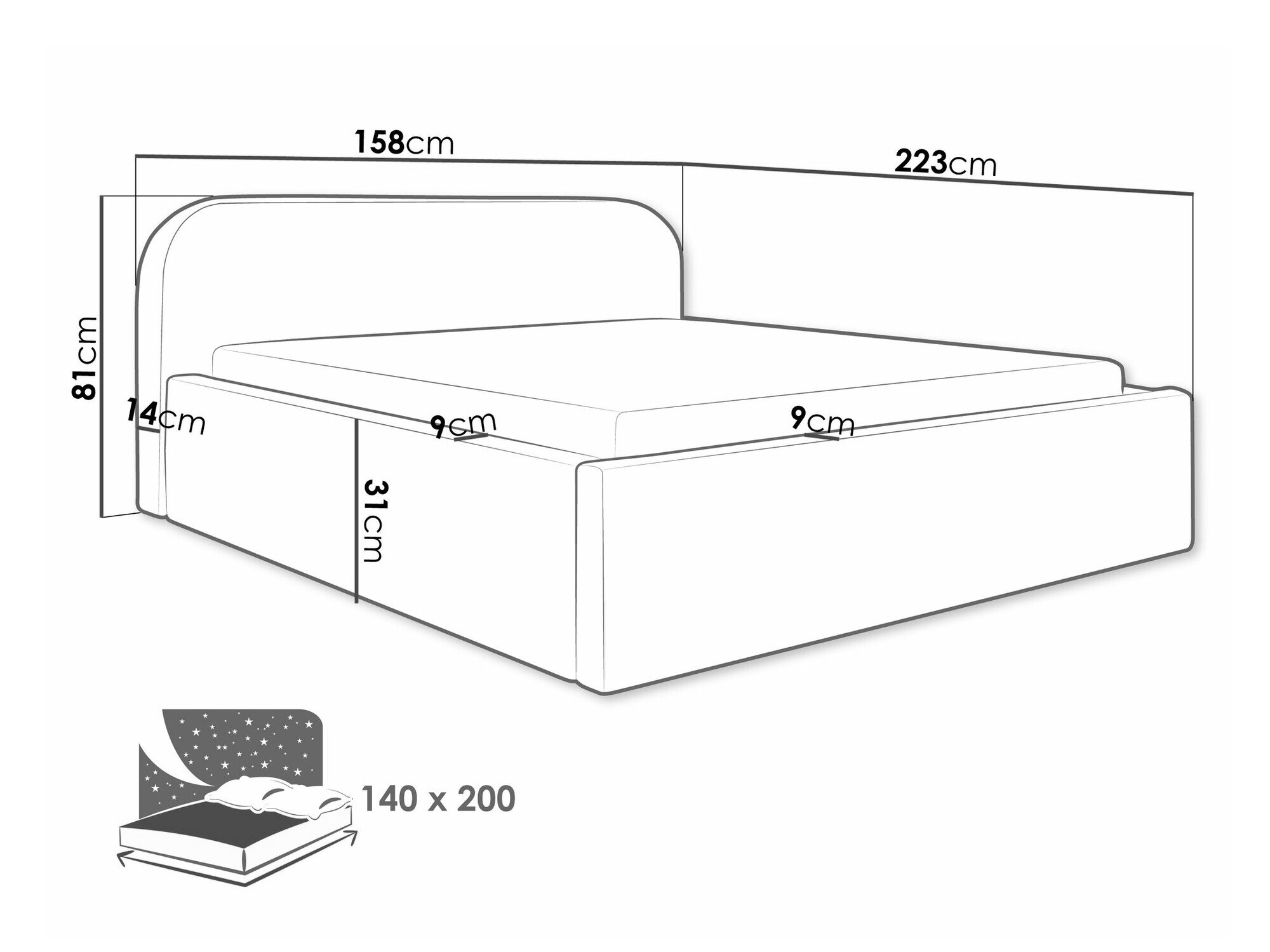 16 x 140 x 200 cm