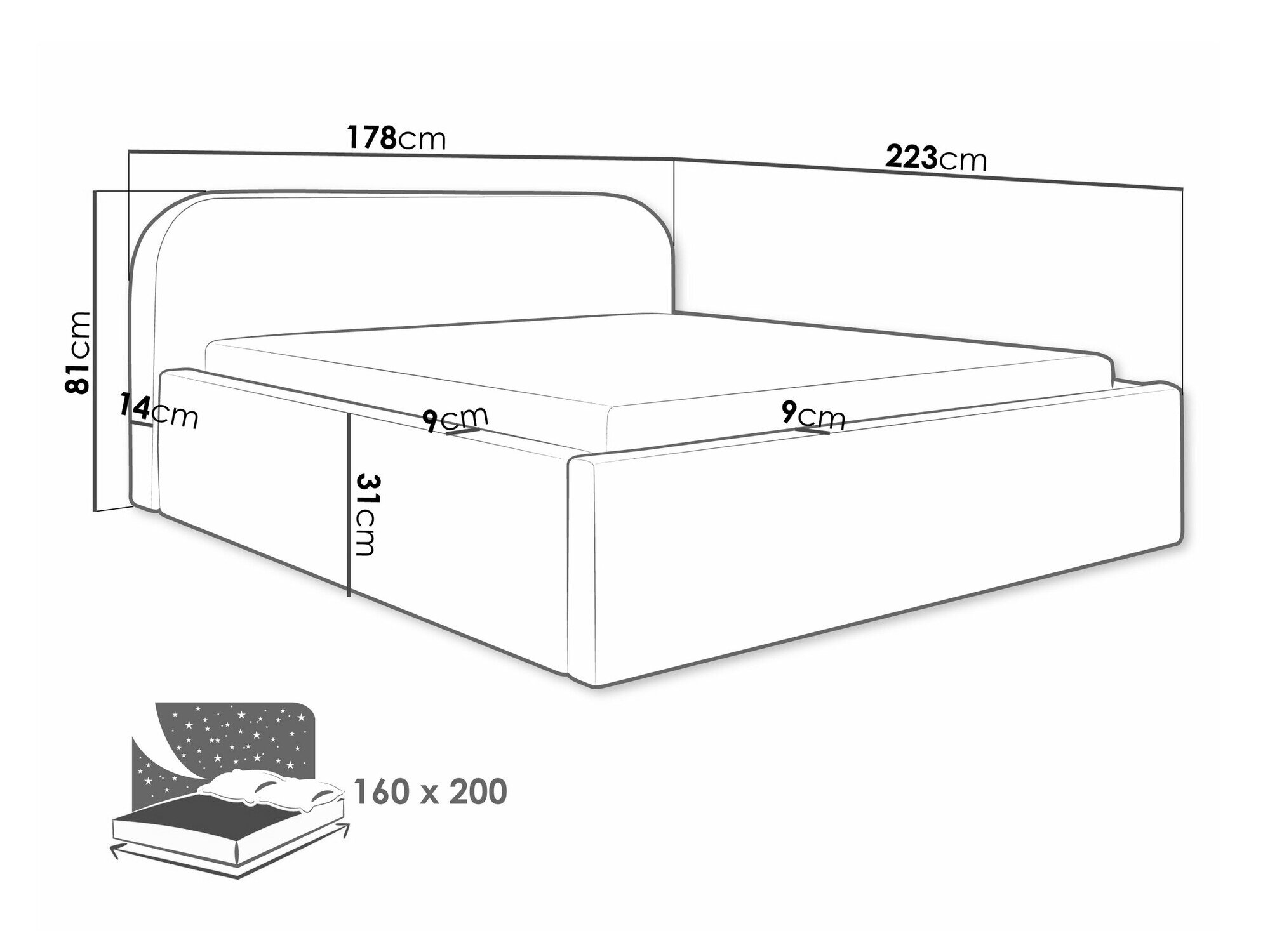 16 x 160 x 200 cm