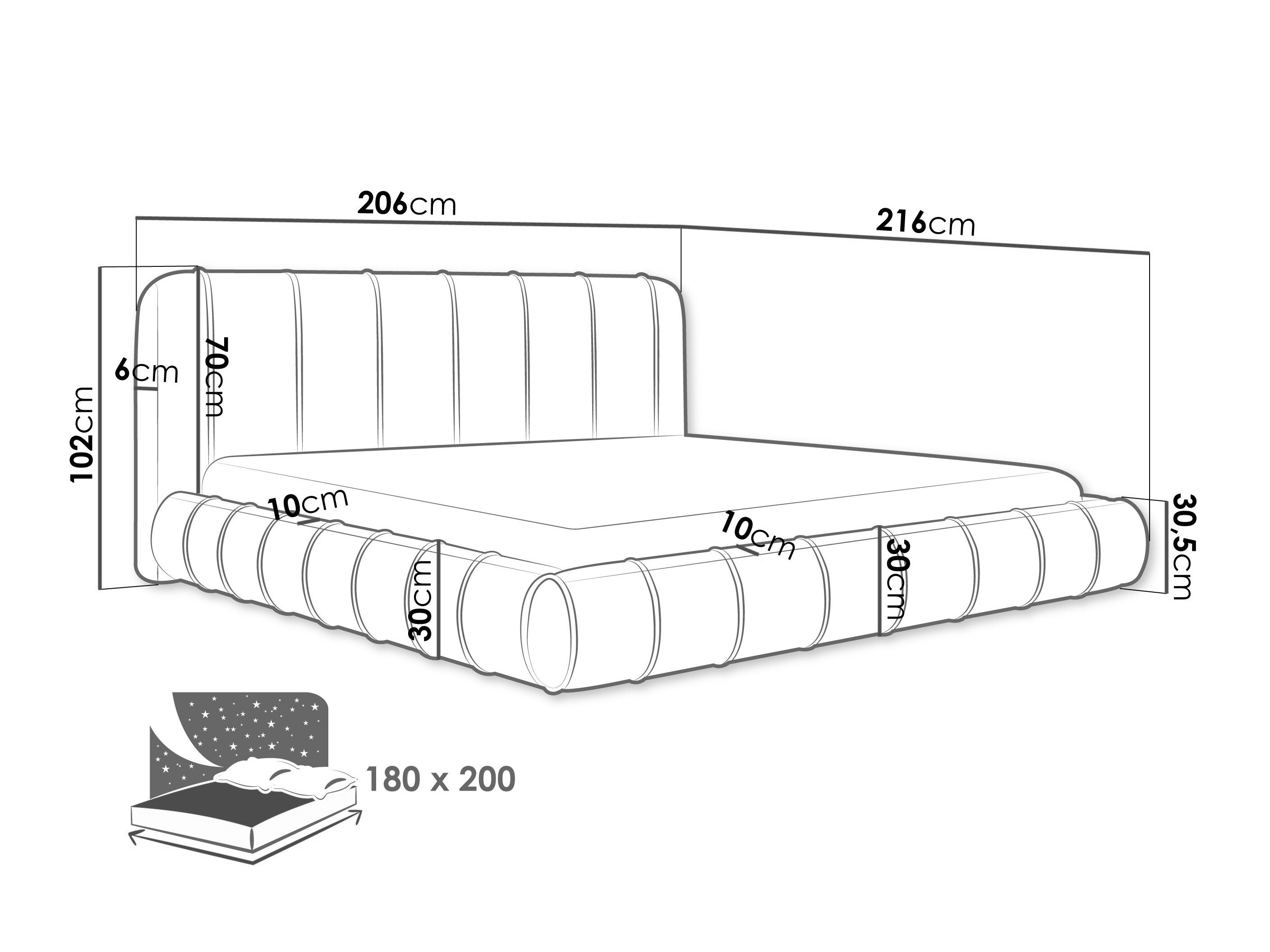 28 x 180 x 200 cm