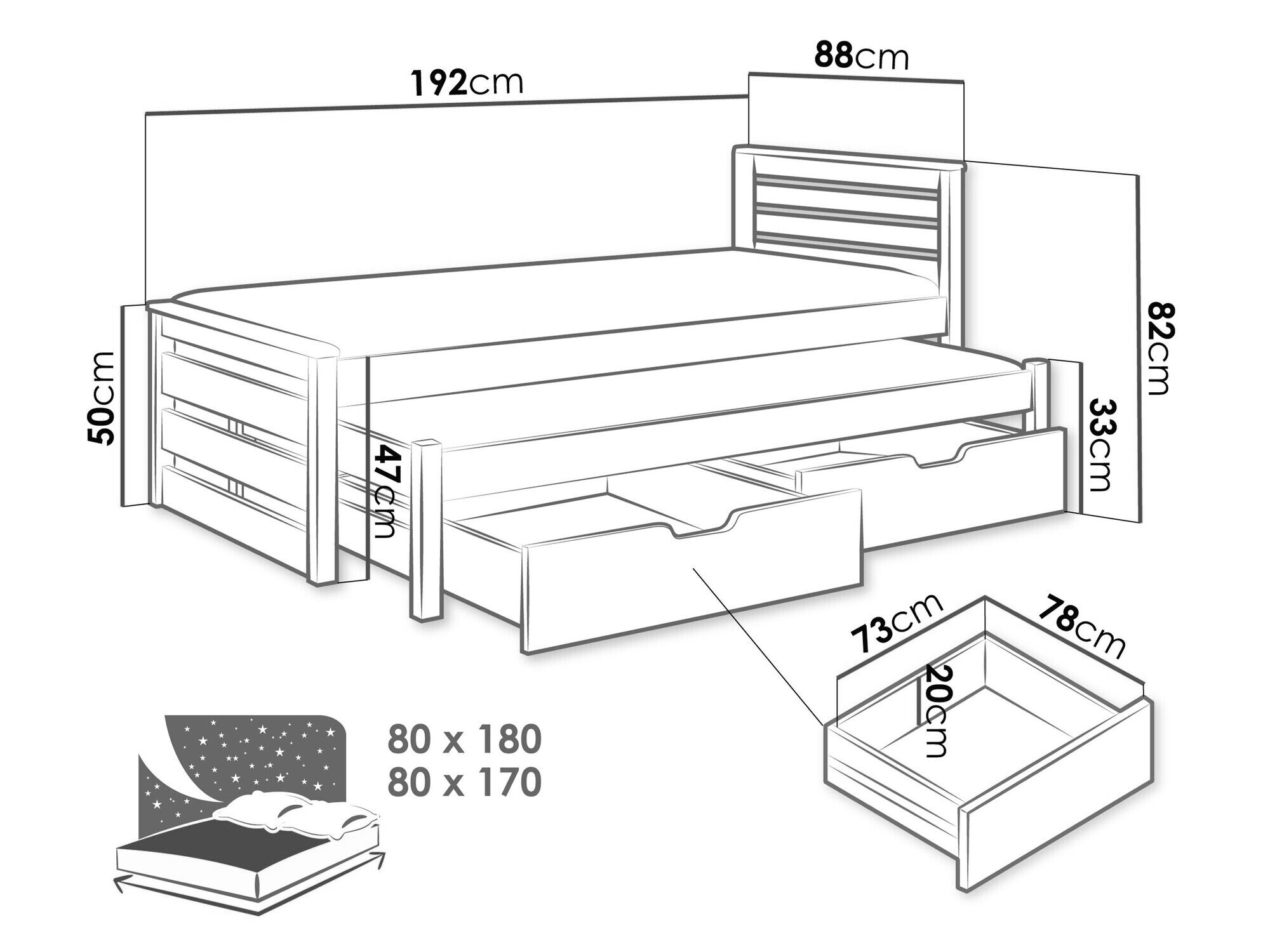 - 80 x 170 cm