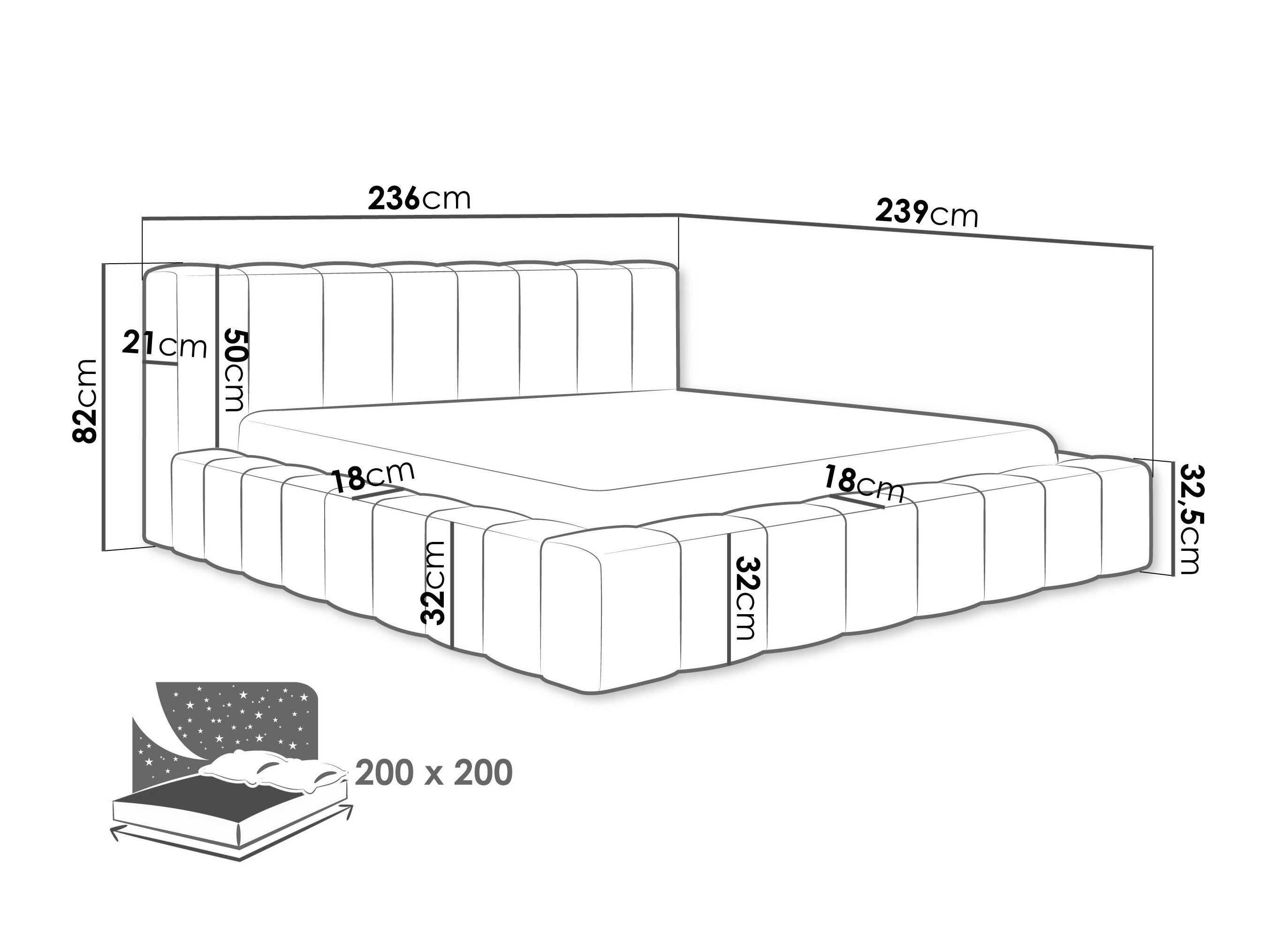 - 200 x 200 cm