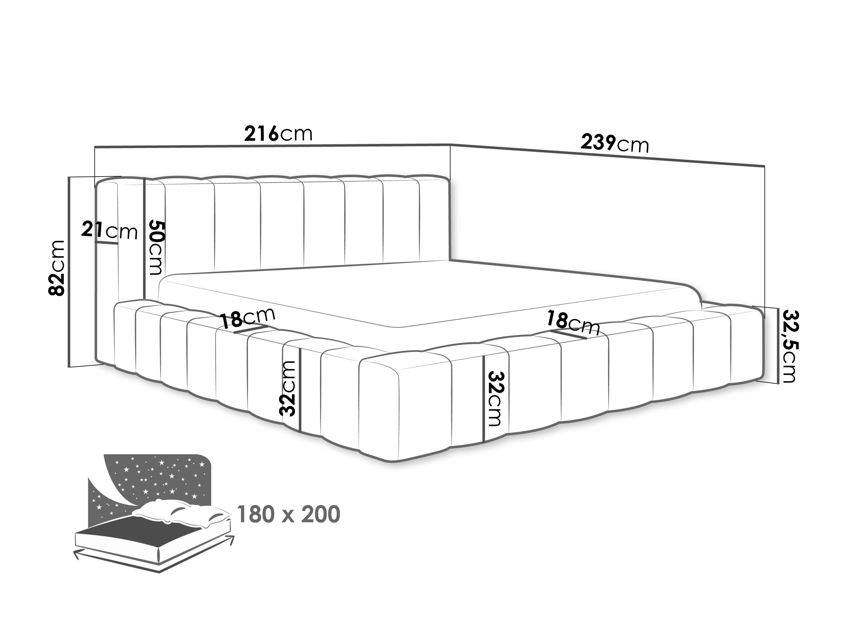 - 180 x 200 cm