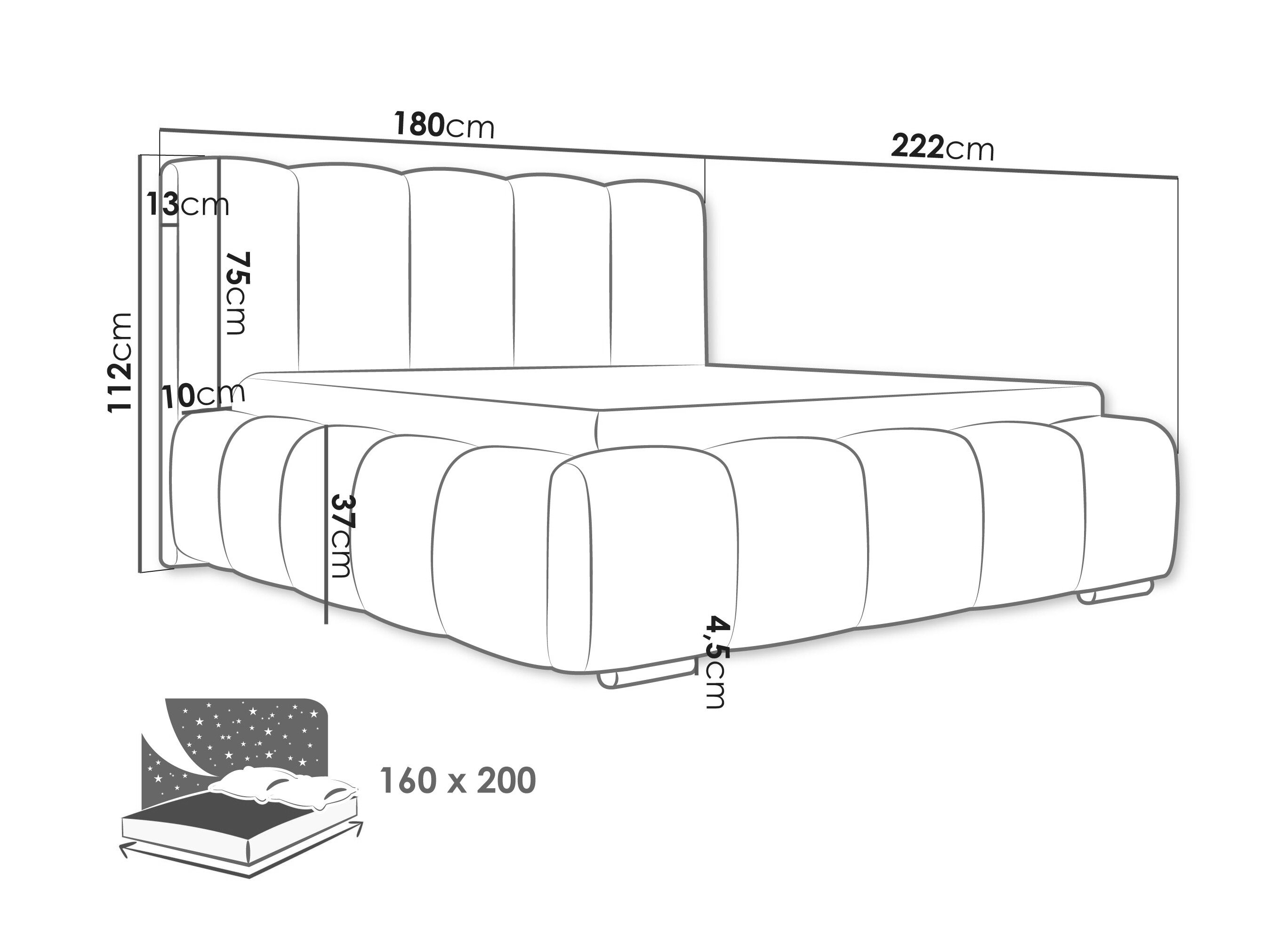 16 x 160 x 200 cm