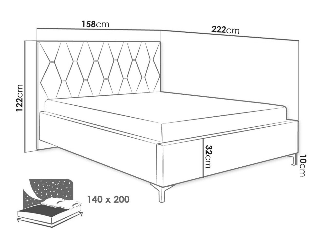 Sengekasse dimensioner: