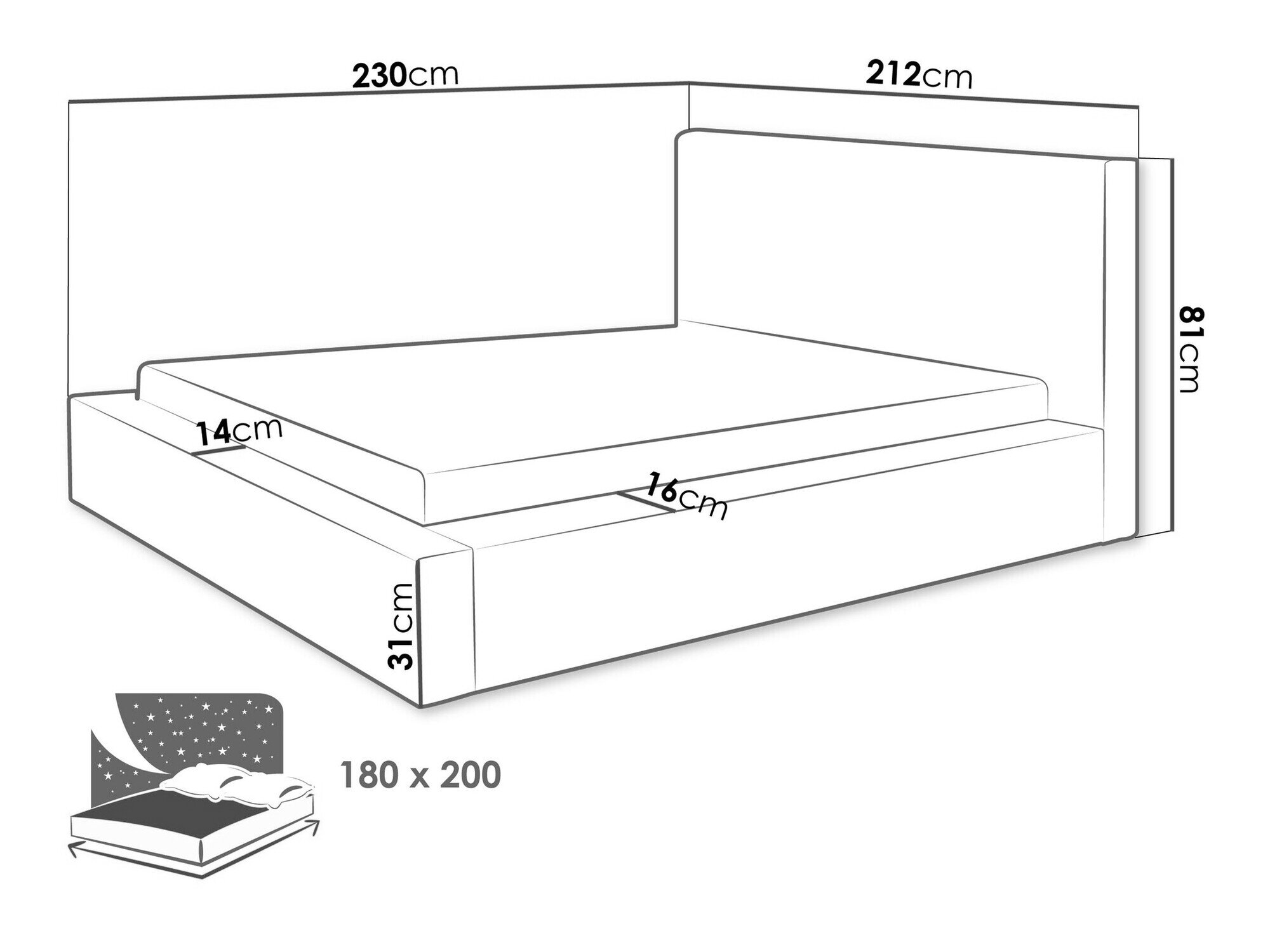 Sengekasse dimensioner: