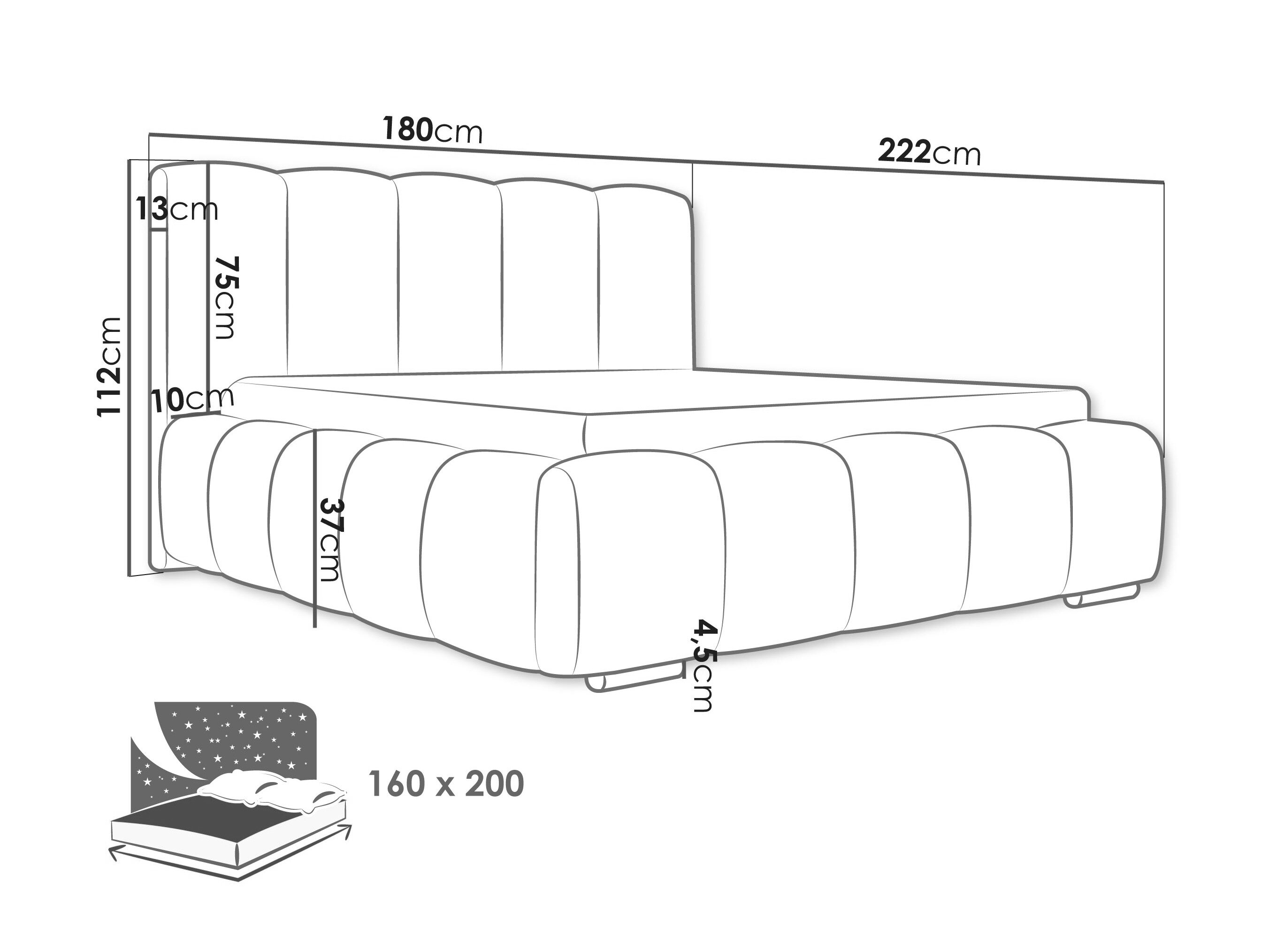 16 x 160 x 200 cm