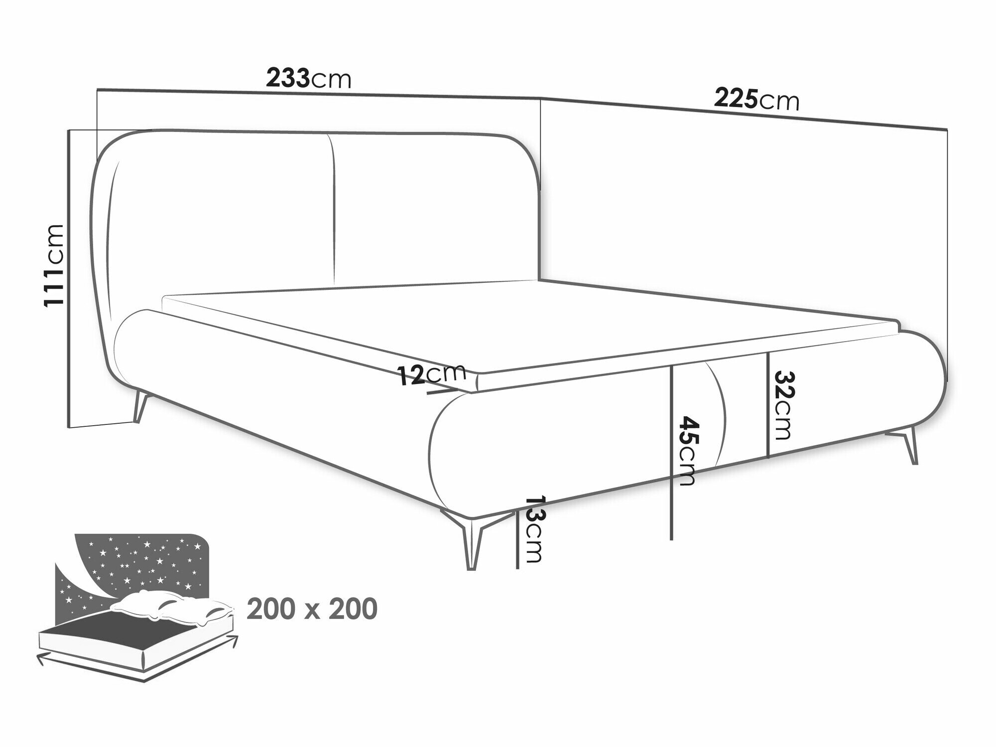 - 200 x 200 cm