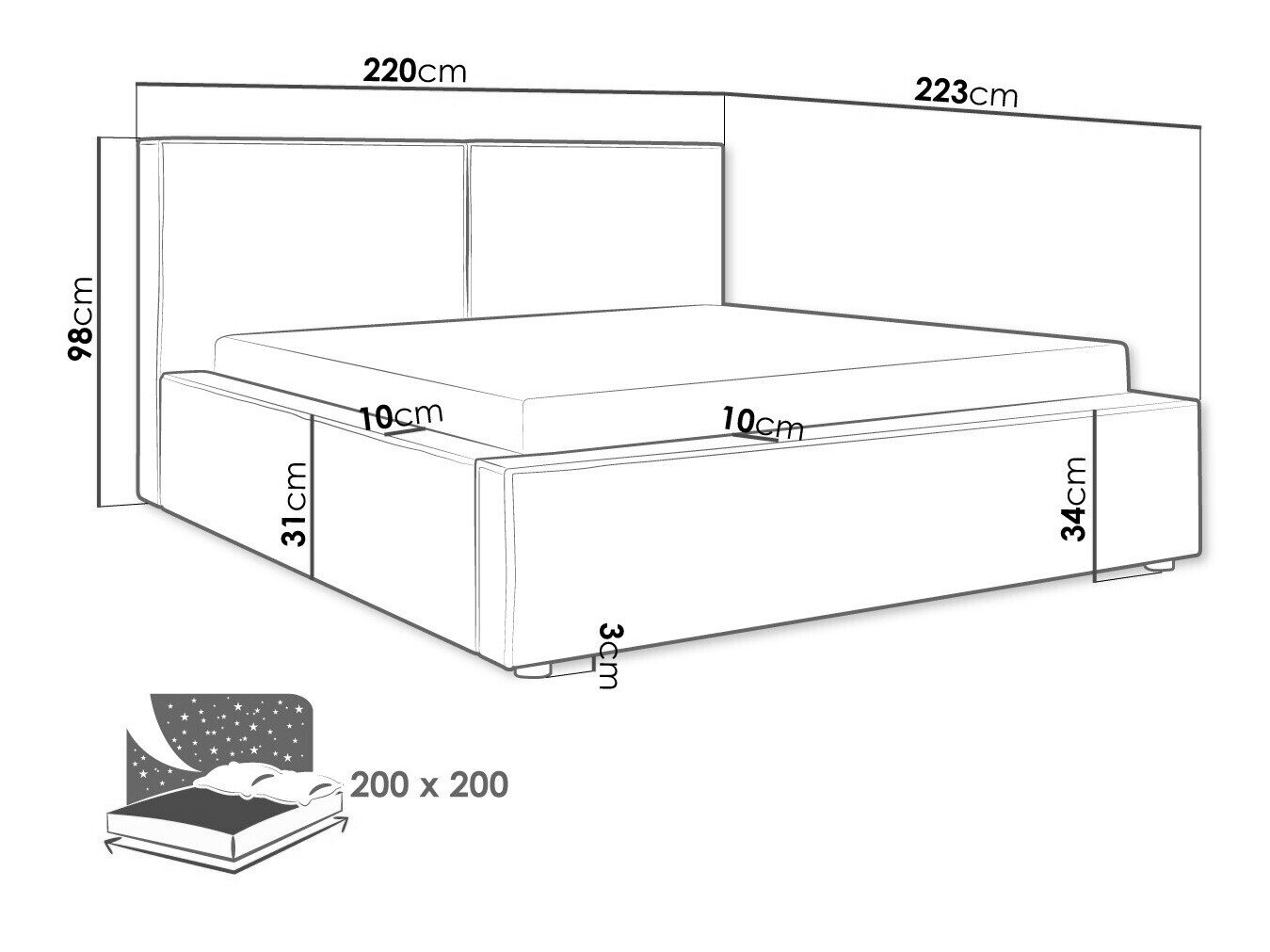 Sengekasse dimensioner: