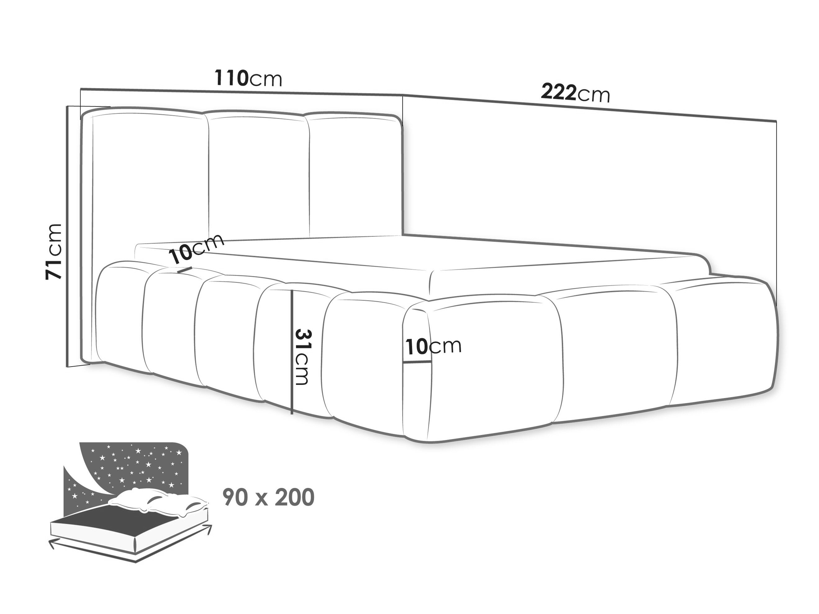 - 90 x 200 cm