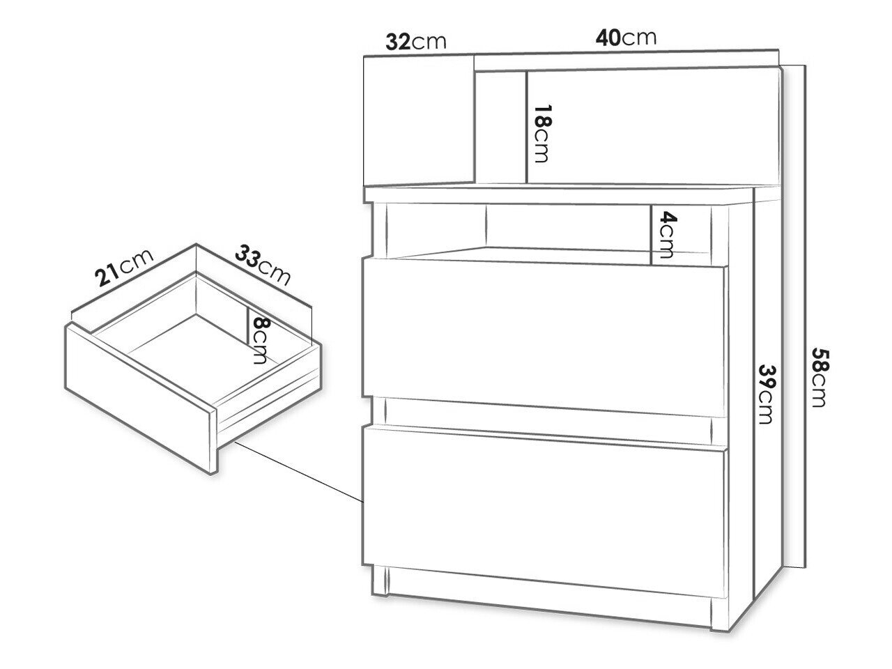 - Med skuffer