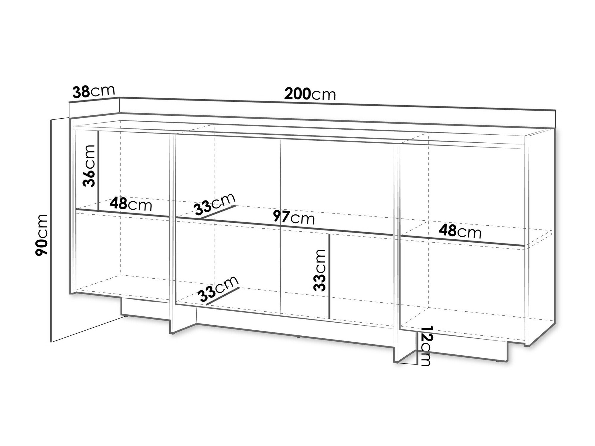 90 cm  200 cm  38 cm