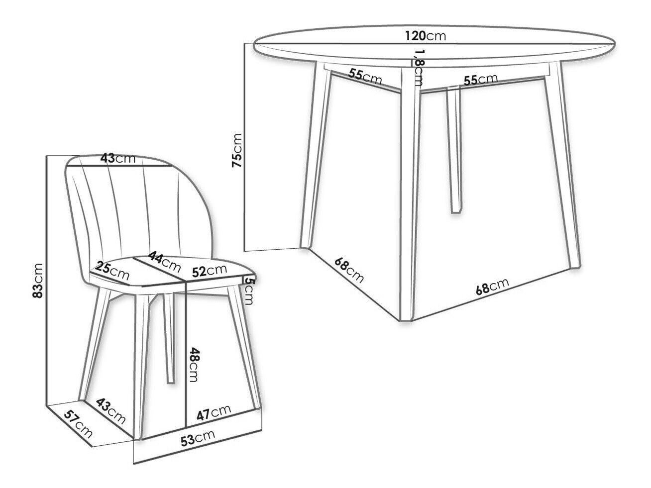 Dimensioner på stole: