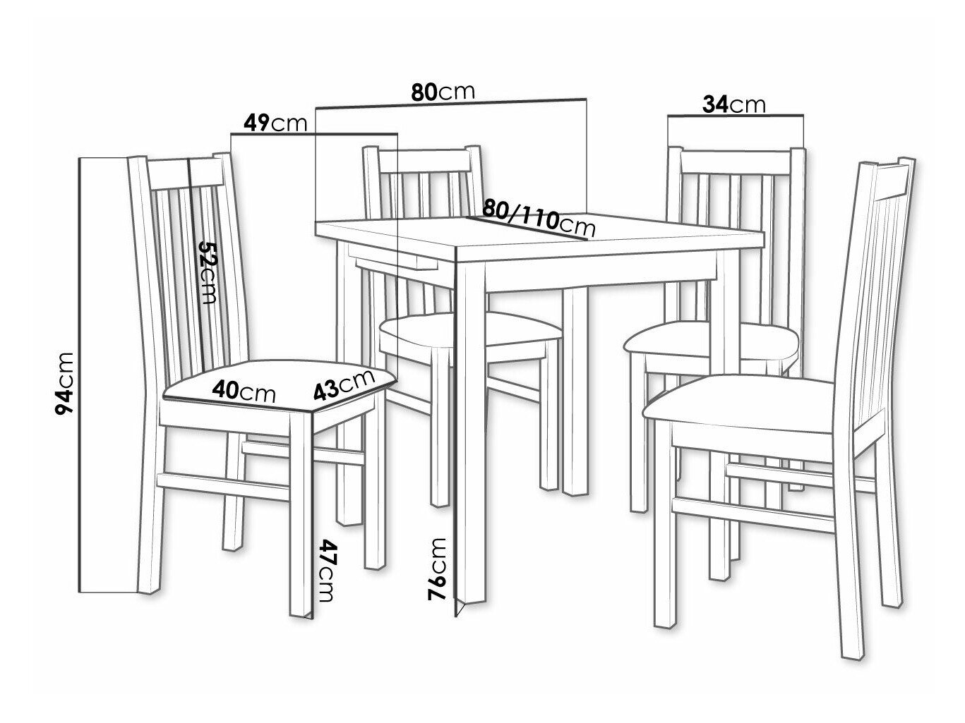 Dimensioner på stole: