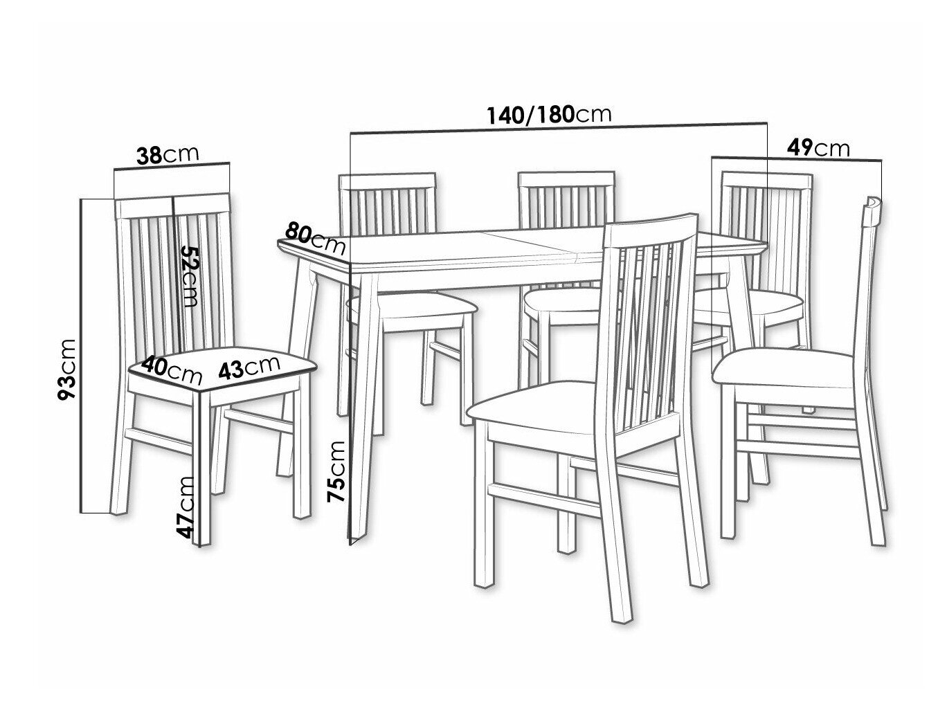 75 cm  80 cm  140 cm