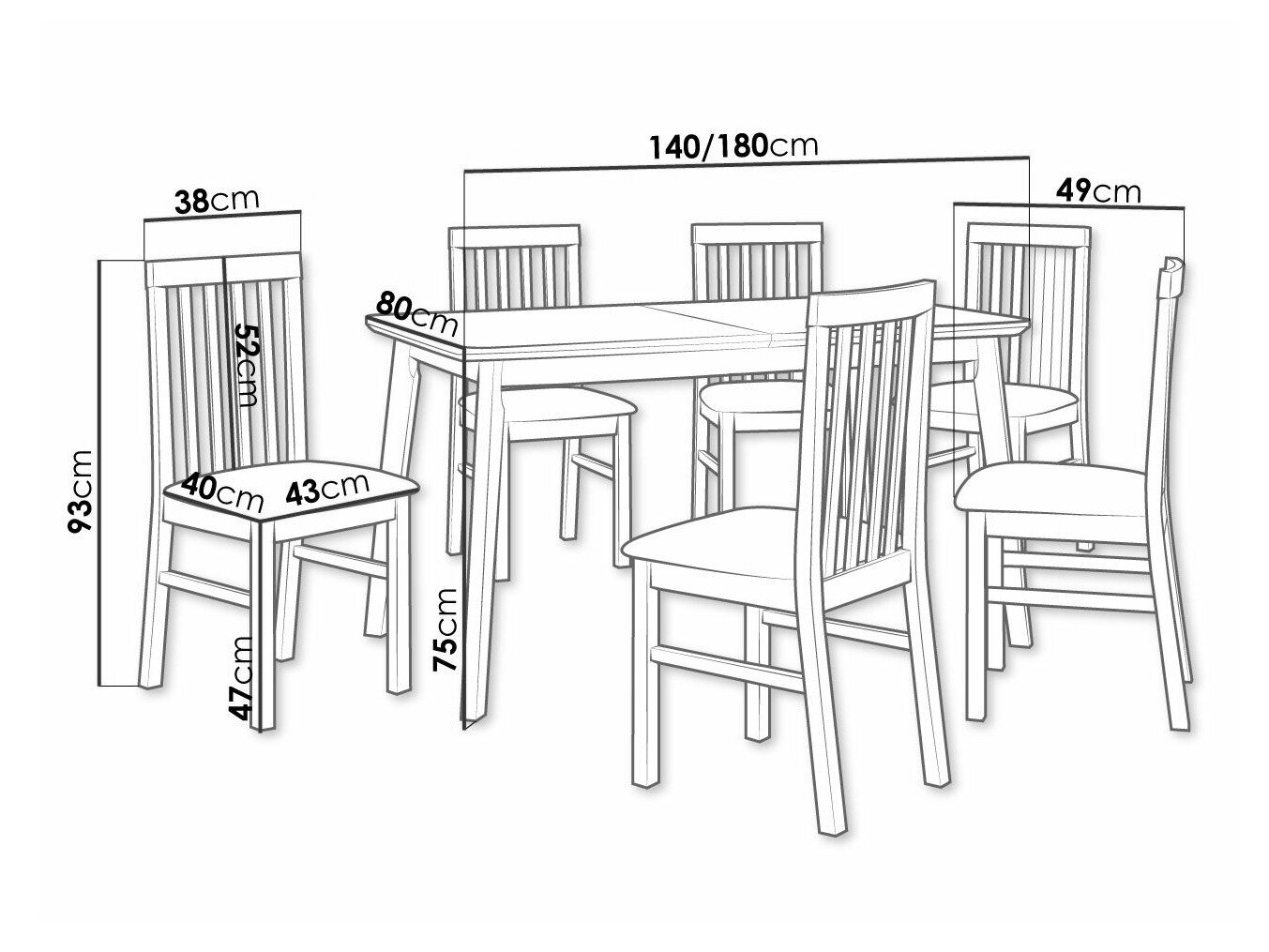 Dimensioner på stole: