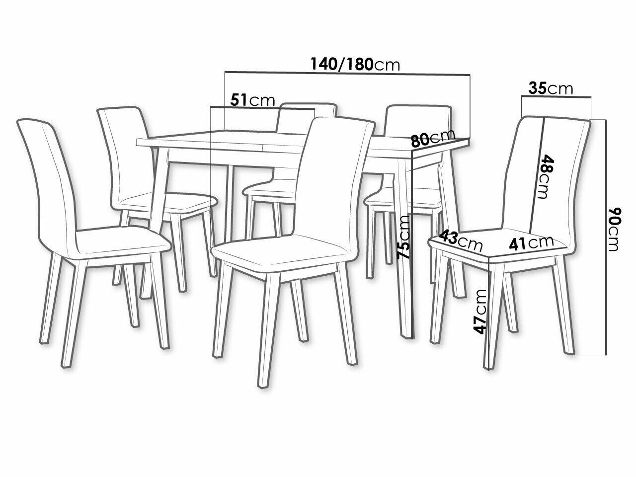 75 cm  80 cm  140 cm