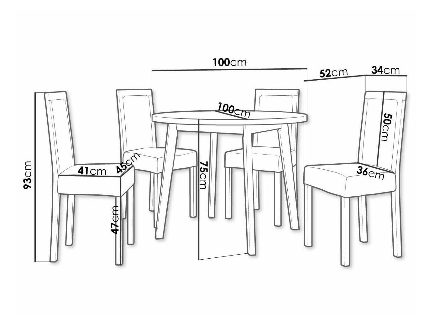 93 x 45 x 52 cm