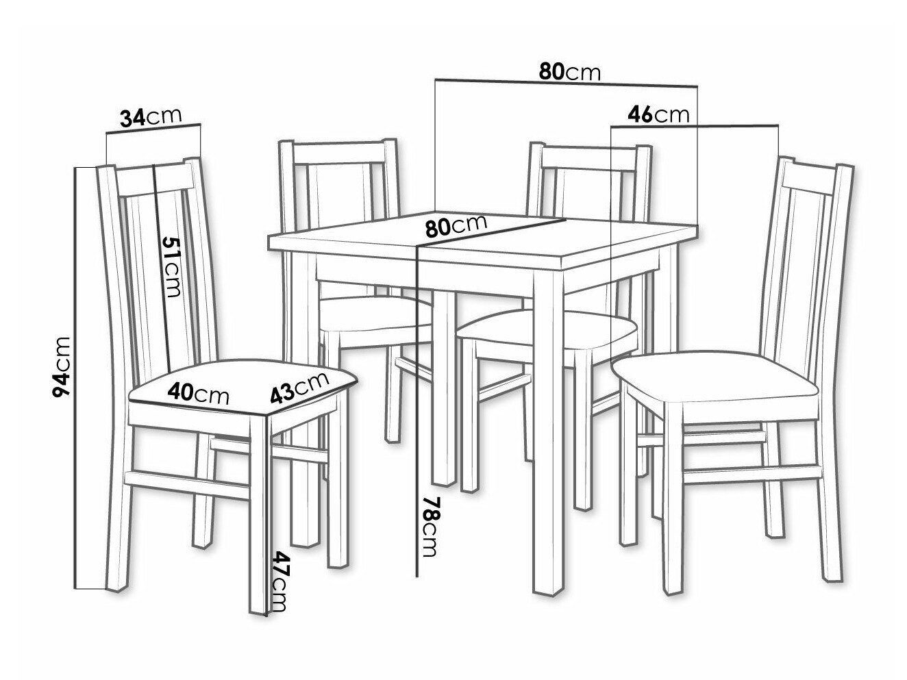 78 cm  80 cm  80 cm