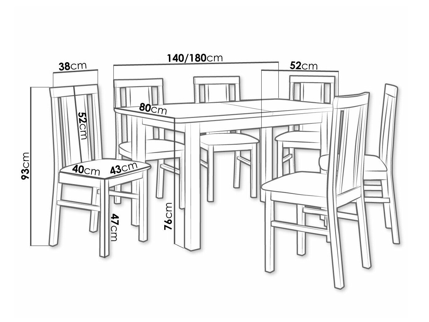 Dimensioner på stole: