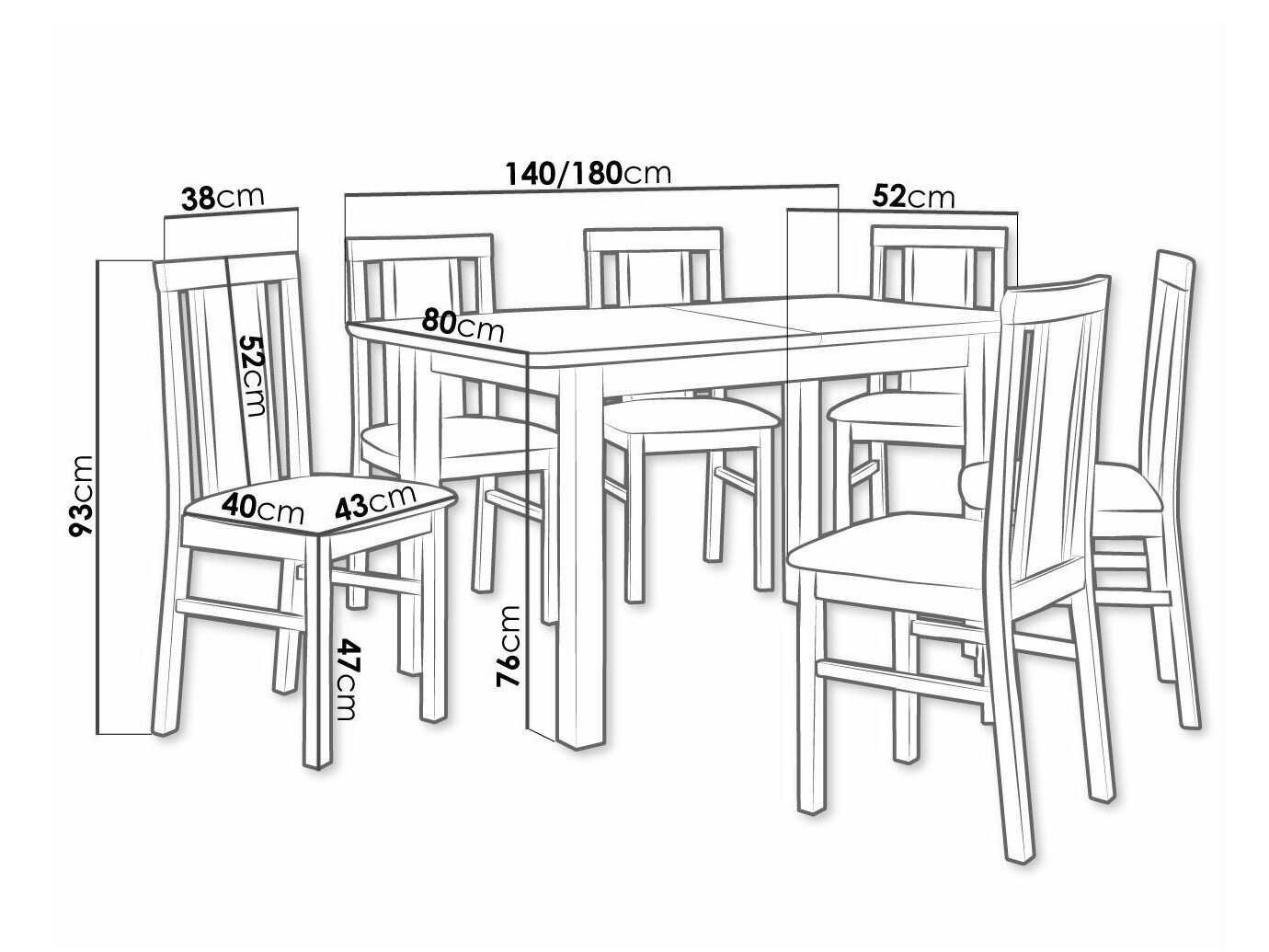 Dimensioner på stole: