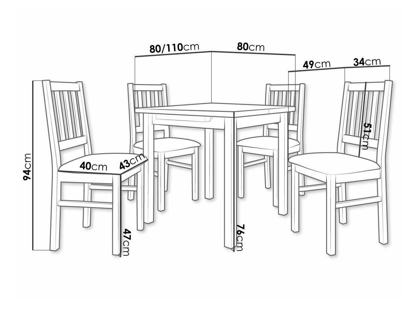 Dimensioner på stole: