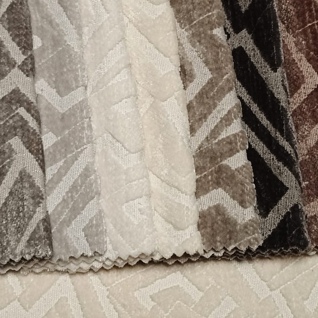 Et stof dekoreret med hævede geometriske mønstre i 3D-effekt, hvilket gør det til et ideelt accessoire til ethvert interiør. For optimal pleje anbefales det kun at rengøre overfladen med milde, polsterspecifikke rengøringsmidler.